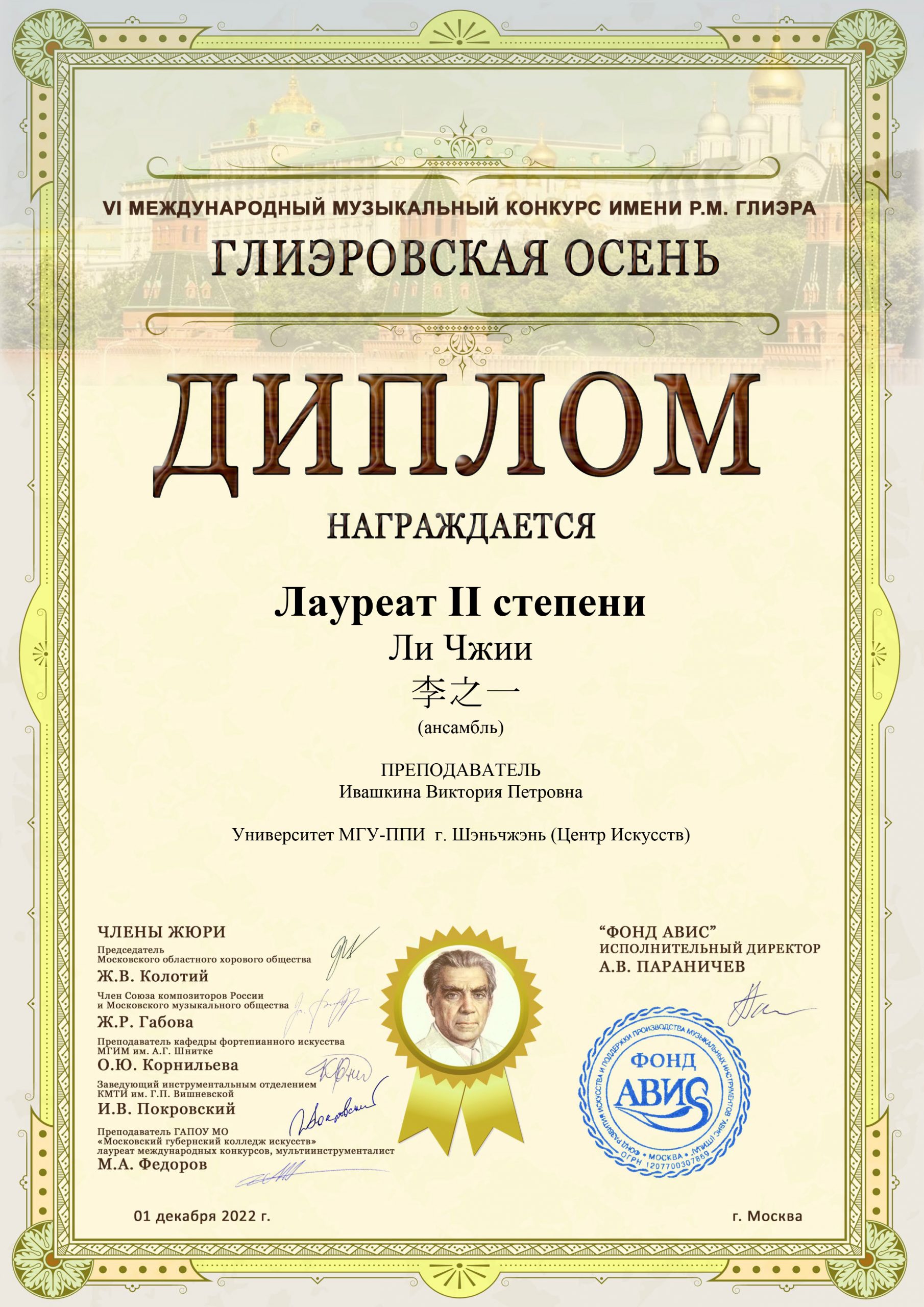 日前,第六届格里埃尔国际音乐比赛传来喜讯。ac米兰官网中文网站语言系本科生李之一,在艺术中心教师维多利亚·伊瓦什金娜指导下荣获比赛二等奖。生物系研究生曹博阳在艺术中心教师博洛茨基·尤金指导下荣获比赛三等奖。