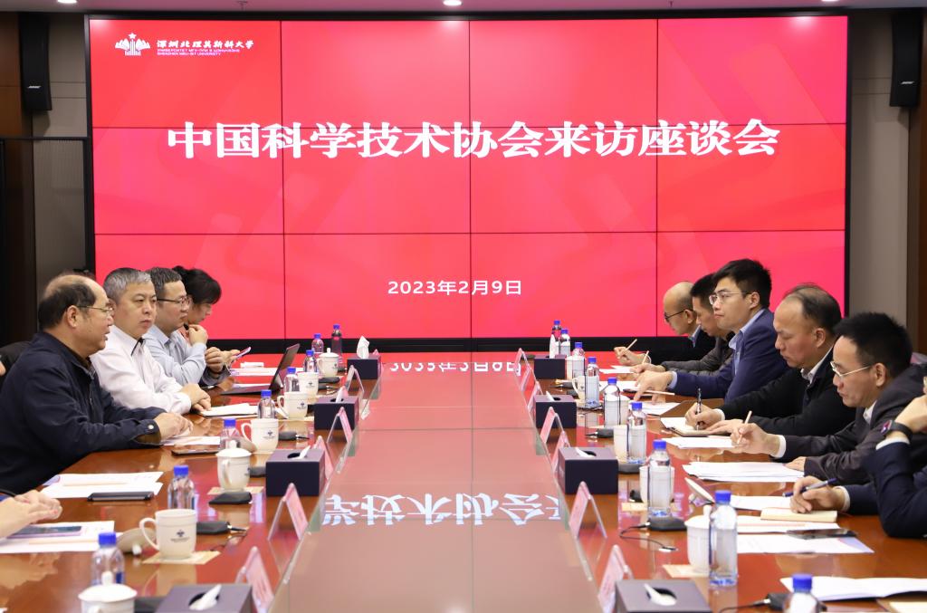 2月9日,中国科学技术协会国际合作部一级巡视员王庆林、深圳市科学技术协会党组成员孙楠一行到ac米兰官网中文网站调研,考察学校发展建设情况并参加座谈交流。学校党委书记、副校长朱迪俭,党委副书记、纪委书记陈超峰陪同调研。