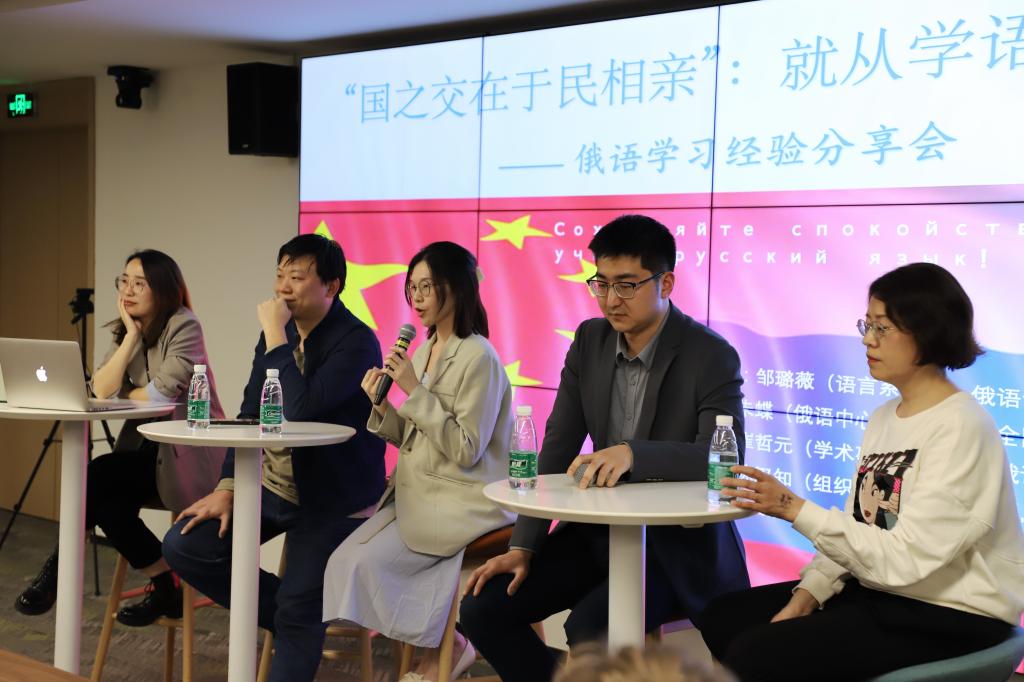 在两个多小时的座谈会上,主持人和嘉宾们就俄语听力、口语、词汇和语法四方面分享了各自的学习经验。比如可以通过听由易到难的俄语录音、先掌握正确的俄语发音、做听抄训练等方法提高听力水平,通过背课文完成知识储备与输入、再在实践中自信表达自己、运用影子训练法、反复模仿等提高口语,结合语境中记单词等。