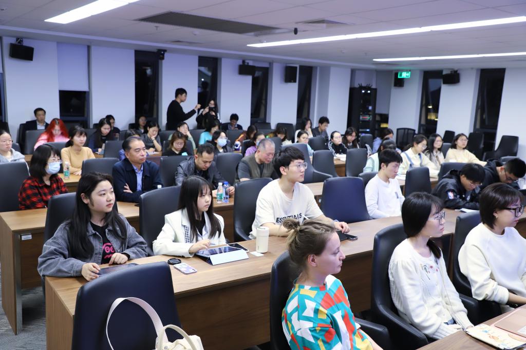 语言系中方主任周兴武作为开场嘉宾介绍活动宗旨,座谈会由语言系教师邹璐薇主持,座谈嘉宾分别是四位具有优秀语言能力的教师、行政人员和学生,他们分别是:俄语中心资深教师、全国俄语大赛优秀指导教师朱蝶,学术事务部老师崔哲元,组织人力资源部老师陈汉知和语言系2022级研究生邝淑茹。组织人力资源部马克西姆老师作为“神秘嘉宾”到场,分享自己学汉语的经验。