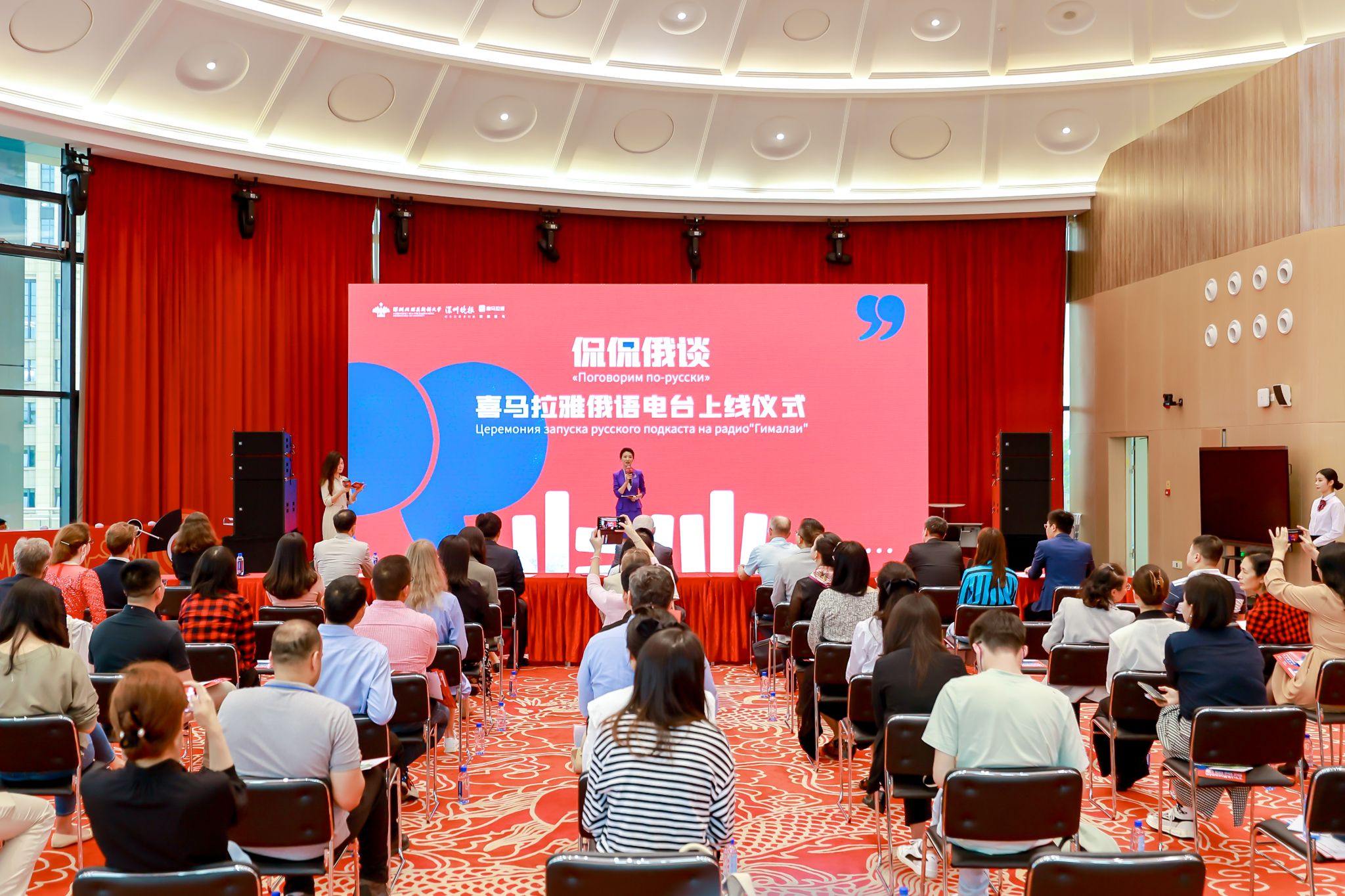 在全场观众的注目下, 双方领导与嘉宾一起拨动代表声音质感与情怀的黑胶唱片。随着唱片盘的转动,宣告“侃侃俄谈”喜马拉雅俄语电台正式上线!