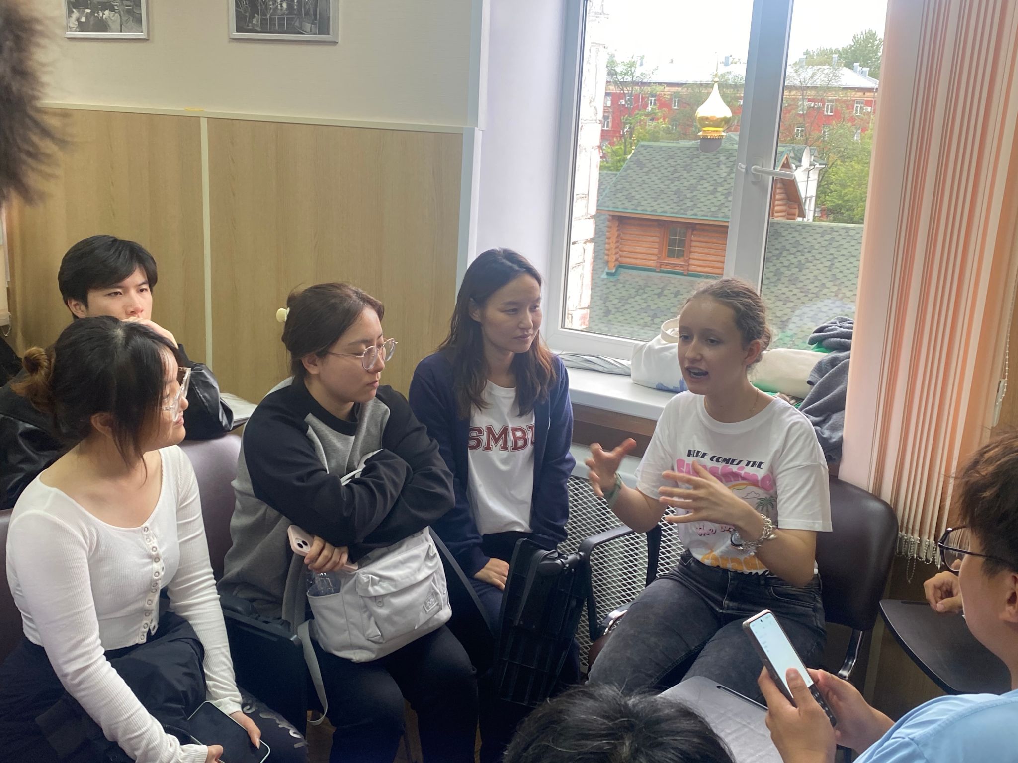 课堂结束后,同学们与学习了四年中文的俄罗斯学生举行了见面会,用中俄双语进行交流,探讨语言学习、生活方式、未来规划等各方面的话题,感受中俄各具特色的文化魅力。