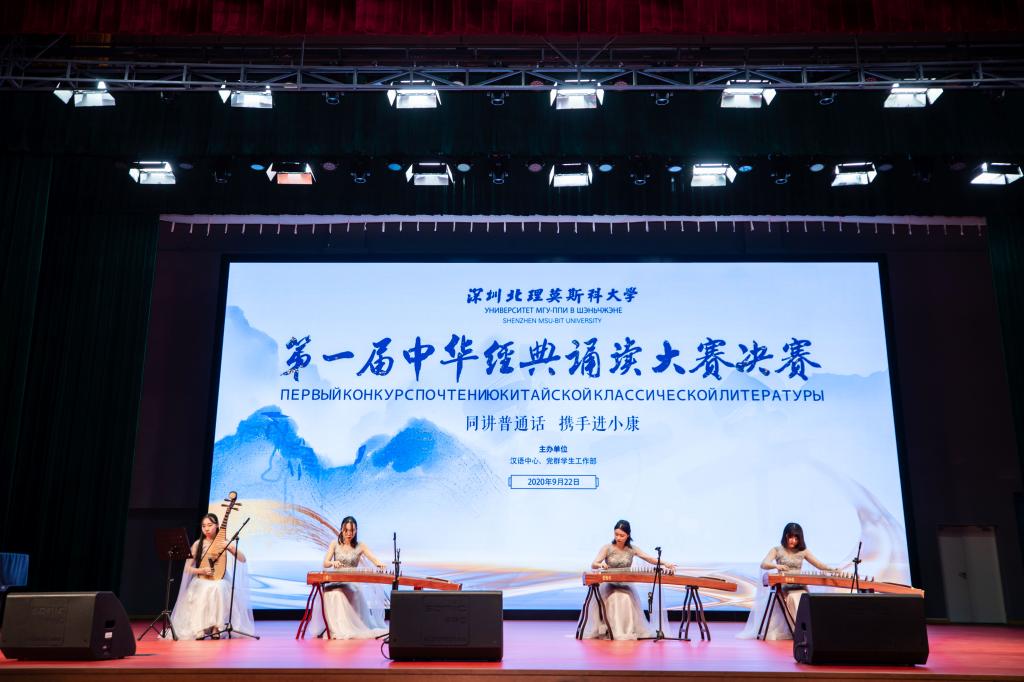 学校民乐团和大赛评委常秀玲副教授在现场分别为大家带来了民乐表演《渔舟唱晚》和诗朗诵《满江红·和郭沫若同志》,将当晚决赛推向了高潮。