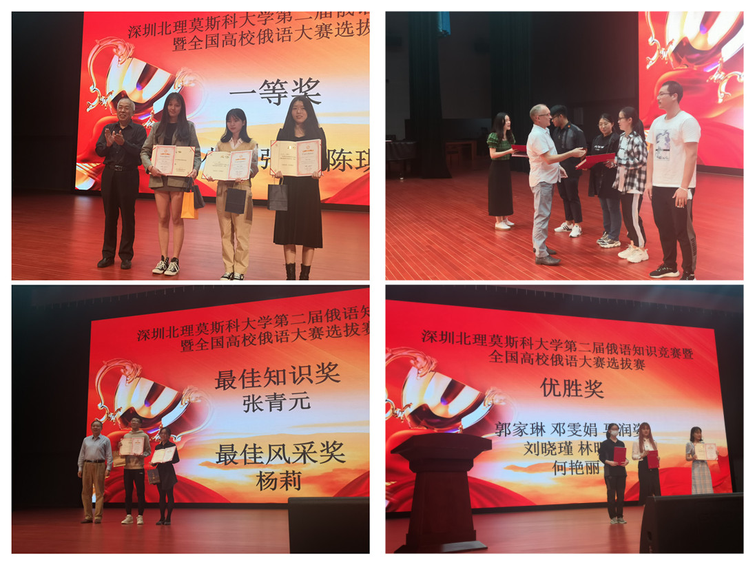 颁奖典礼上,学校校长李和章、学术事务部第一副部长杨刚、系主任列杰涅夫、副系主任博佳托娃为本次大赛斩获佳绩的同学颁发获奖证书并送上学校精心准备的礼品。