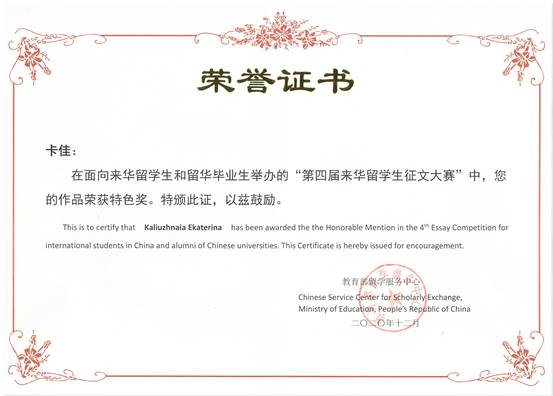 12月8日,由教育部国际合作与交流司主办,教育部留学服务中心承办的第四届来华留学生征文暨短视频大赛颁奖典礼在线上举行。教育部国际合作与交流司副司长方军、教育部留学服务中心副主任杨凌出席活动并致辞,来自150余所参赛院校的近200名师生在线参加颁奖典礼。ac米兰官网中文网站荣获大赛优秀组织奖;2019级材料系、俄罗斯籍学生卡佳(KALIUZHNAIA EKATERINA)的作品《我与中国的精彩会面》获大赛特色奖。