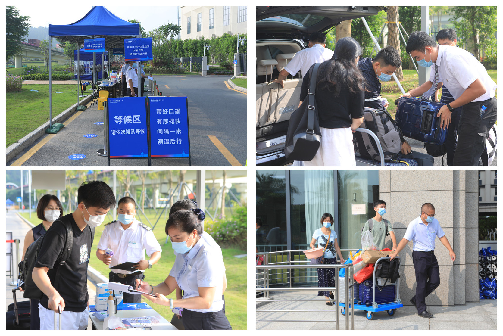 为了迎接新生到来,学校在深圳宝安国际机场T3航站楼到达厅、深圳北站西广场出站口提供免费班车接送服务。学校严格遵守国家、省市的秋季返校防疫工作要求,精心制定了一系列工作方案、应急预案,安排新生及家长统一从学校东门进入,并在校门口设立查验点,新生以及随行人员在进行体温检测和核查健康码后才可进入校园,为校园筑起一道坚实、安全的防护墙。