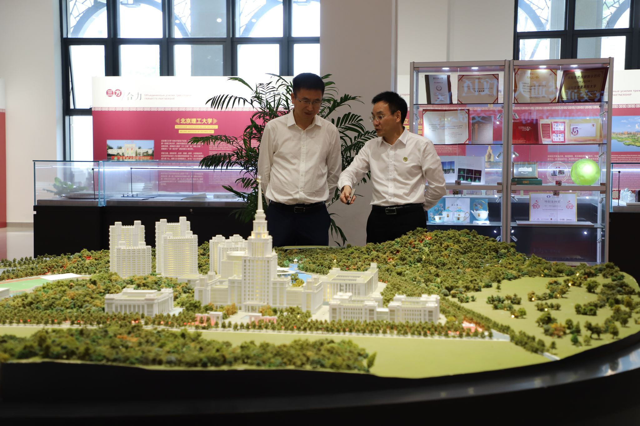 双方就中外合作办学高校的党建工作、高层次人才引进、学生培养模式以及学生管理工作等进行了交流讨论。 会后,孙文博一行参观了学校办学历程展览。