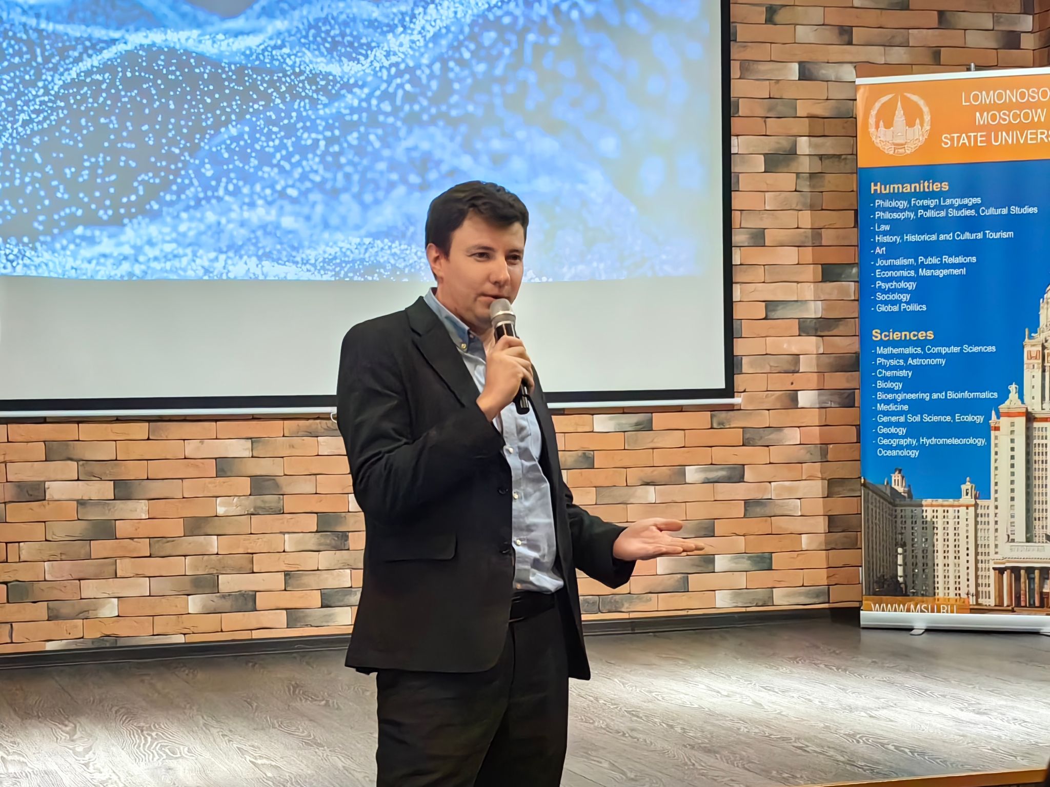 第一副校长助理卡尔梅科夫·彼·尼在会上表示,非常高兴在莫斯科见到各位同学,希望大家珍惜这次机会,能够与莫斯科的青年学生们广泛交流,提高口语能力,了解俄罗斯人文习俗,祝愿各位同学度过独立自主而又丰富多彩的莫斯科访学生活。