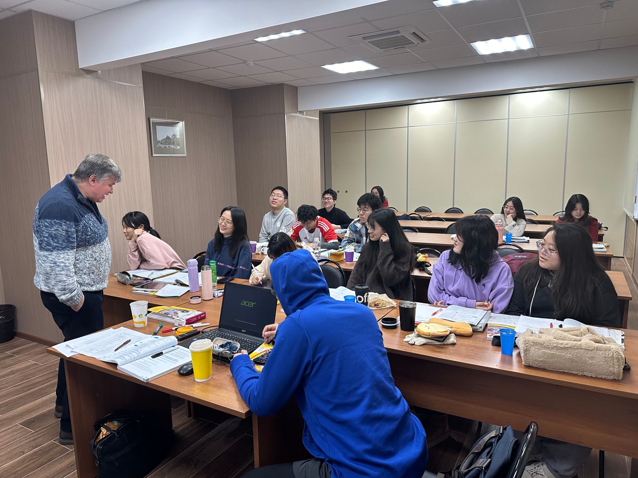 当我们来到语言文化学院,踏入全新的课堂时,无论是俄语课老师抑或是专业课老师,都用他们诙谐的话语和包容的心态,化解了每一个初来者的忧虑与紧张。在课堂上,总是能够听到一句句忍俊不禁的俄式中文,将课堂的氛围带到高潮。与先前所想的完全不同,在异国远方的课堂全然不是沉寂压抑的,与老师、同学之间常常有着良好的互动,每一个人事实上都在一种快乐而活跃的氛围中学习,进步,提升。——2023级经济系 郭一鸣