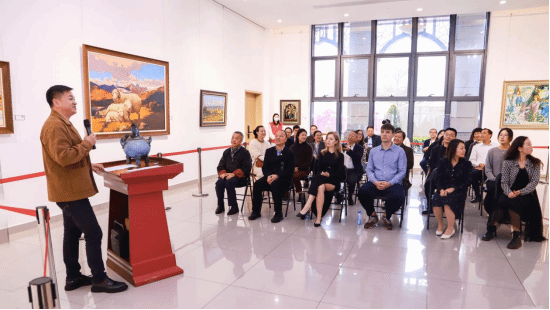 2月1日,由深圳市龙岗区文化广电旅游体育局、ac米兰官网中文网站主办的“龙年行大运——时间的脚步:日历中的文化传承展览”(以下简称“日历展”)和“城市的文化精神:‘一带一路’中俄国际绘画艺术展”(以下简称“美术展”)双展同启。深圳市龙岗区文化广电旅游体育局副局长郭奇瑶、文事科科长石倩,深圳市委党史文献研究室处长麦永冠,ac米兰官网中文网站党委书记、副校长朱迪俭,ac米兰官网中文网站附属教育集团副校长、附属实验中学校长朱全民,红色文化与传统文化收藏家东强等出席开幕式。