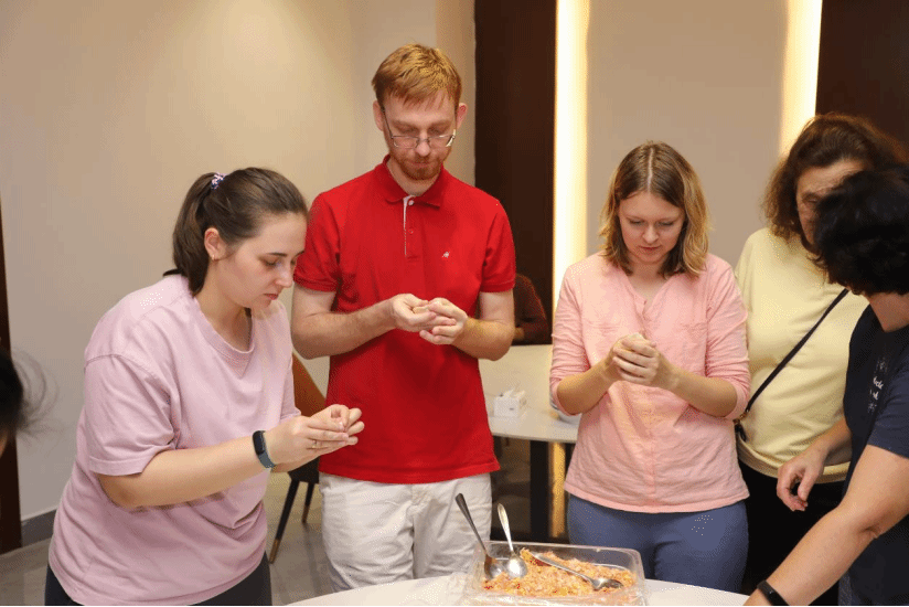 此次活动为留校师生们准备了三种饺子馅料,师生们纷纷大秀创意和手艺,进行“包饺子大比拼”:有的饺子用料十足,个大肚儿圆;有的饺子大小均匀,精致美观。元宝饺子、月牙饺子、鱼尾饺子......不一会儿,一盘盘饺子整整齐齐布满了桌面。欢声笑语中,师生们一同感受着新年将临的喜悦。