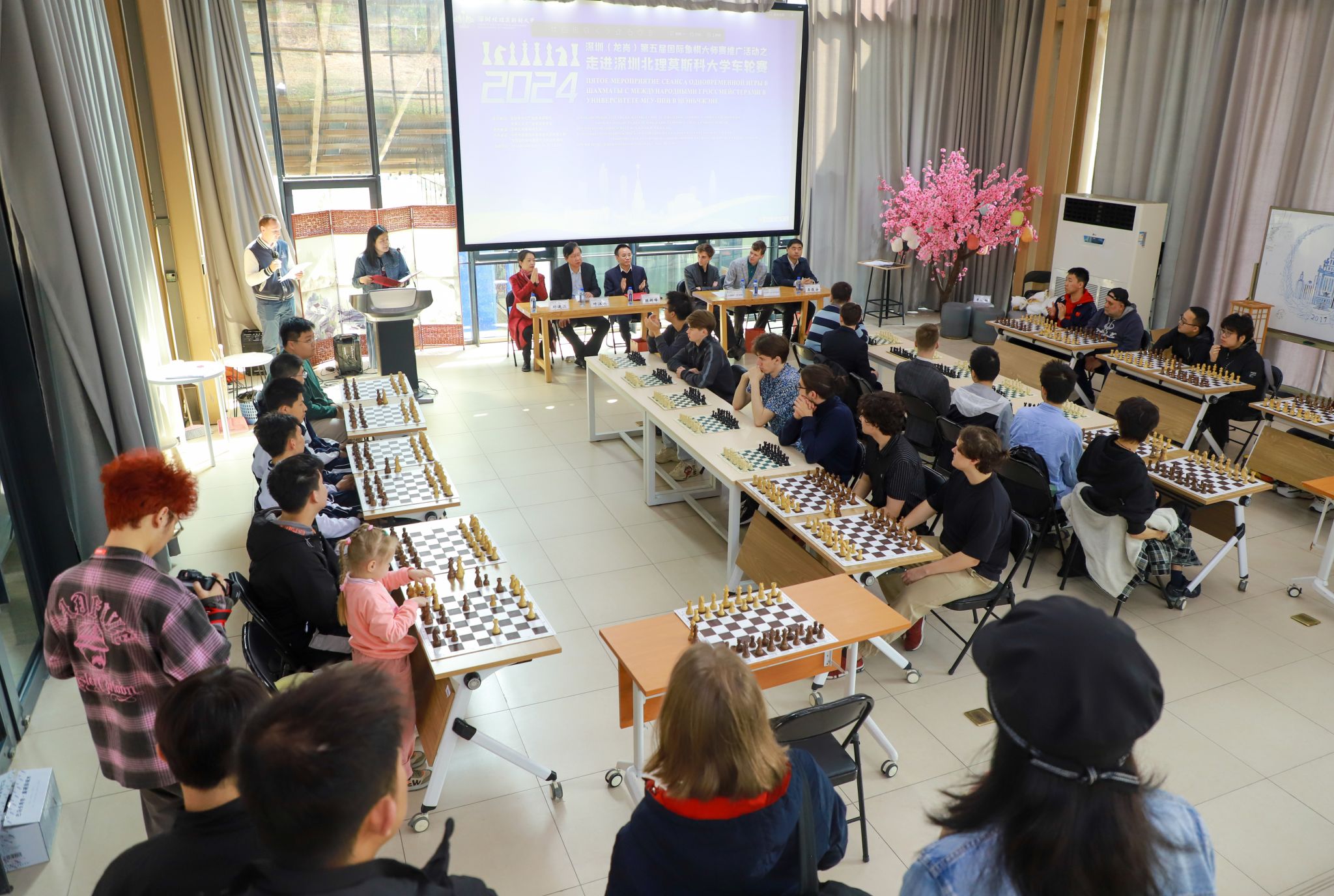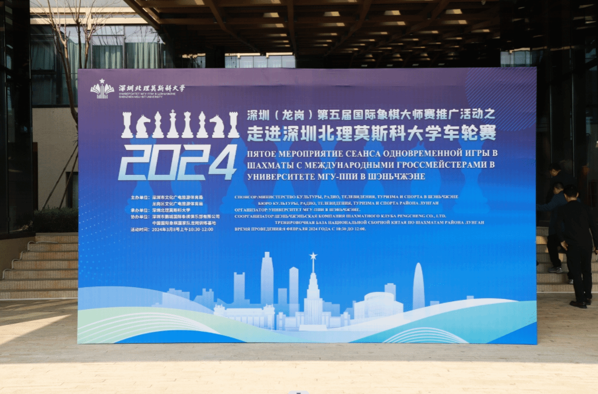 2024深圳·⻰岗第五届国际象棋大师赛鸣金收兵,阿杰梅耶夫、杜波夫两位俄罗斯特级大师并未启程回国,于3月8日应邀来到ac米兰官网中文网站,与众多国际象棋爱好者相聚于学生活动中⼼,一场别具一格的国际象棋车轮赛在此拉开帷幕。