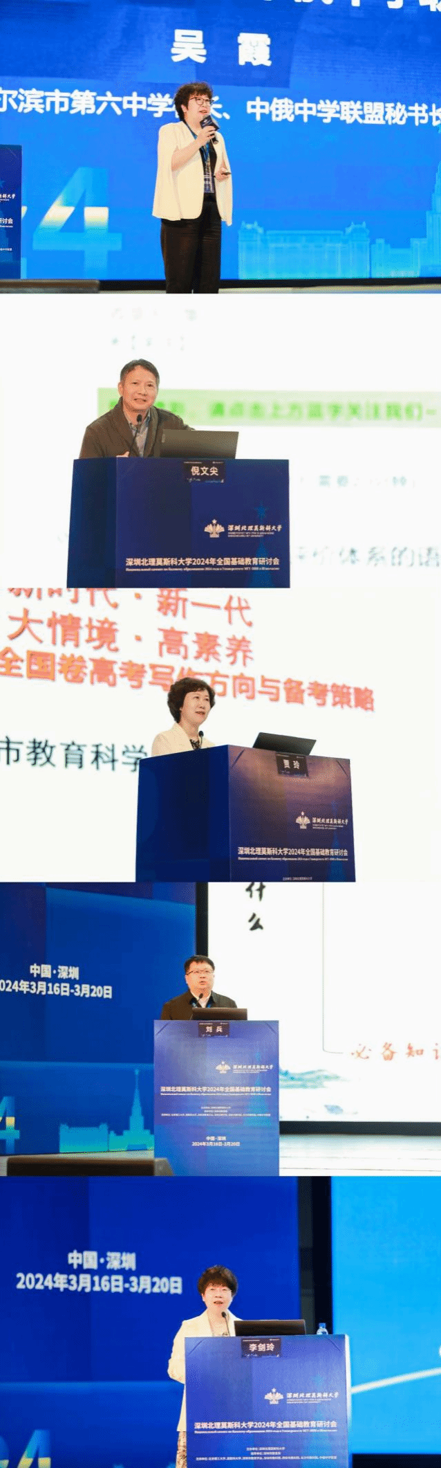 下午的主旨报告同样精彩。哈尔滨市第六中学校长、中俄中学联盟秘书长吴霞带来《哈六中俄语教学以及中俄中学联盟介绍》;华东师大中国语言文学系教授倪文尖带来《文学性阅读的教-学-评问题》;西安市教育科学研究院副院长贾玲带来《新时代新一代大情境高素养——全国卷高考备考指导》;长沙市教科院高中语文教研员刘兵带来《基于学情的高三复习策略》;ac米兰附中语文科组长李剑玲带来《从语文教师到德育名师》。