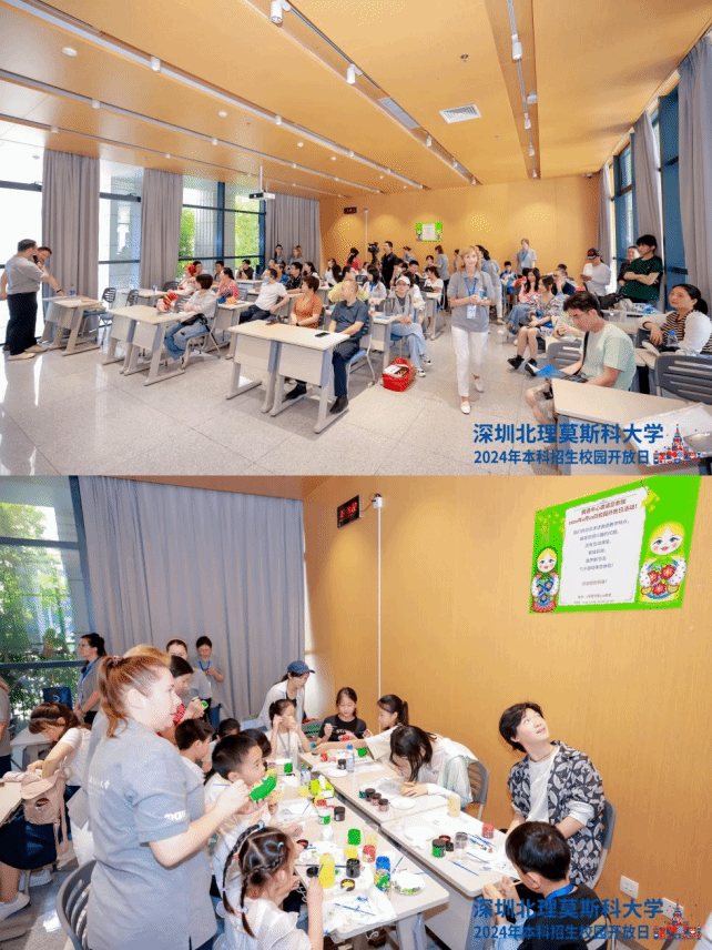 在俄语中心的咨询处,现场气氛热烈,除了解答考生、家长关于俄语学习方面的问题外,现场还设置了套娃彩绘、俄罗斯书法、勺子游戏等互动环节。
