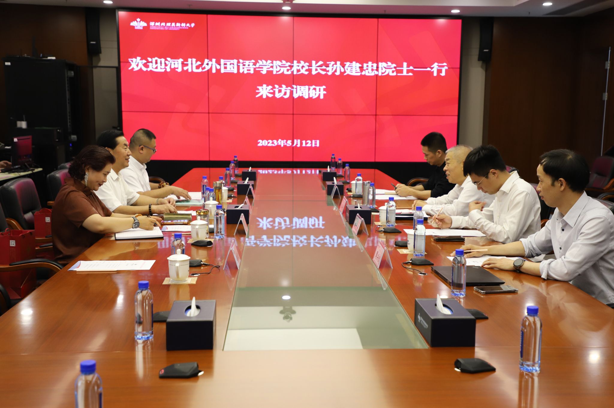 河北外国语学院副董事长、执行校长习伟,院校长外事助理、副校长杨振,校长办公室主任孙鹏琰,ac米兰官网中文网站各相关部门负责人参加调研。