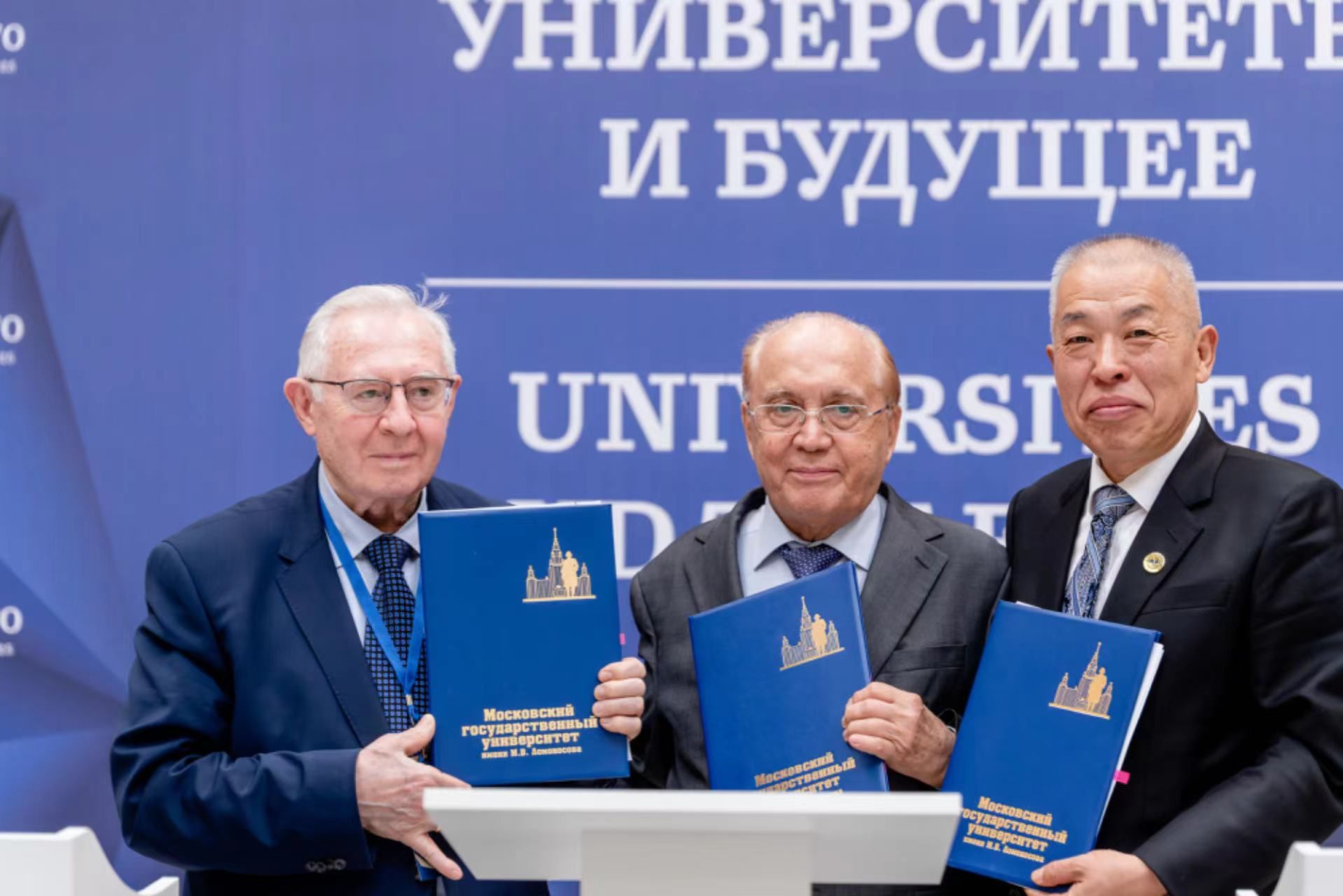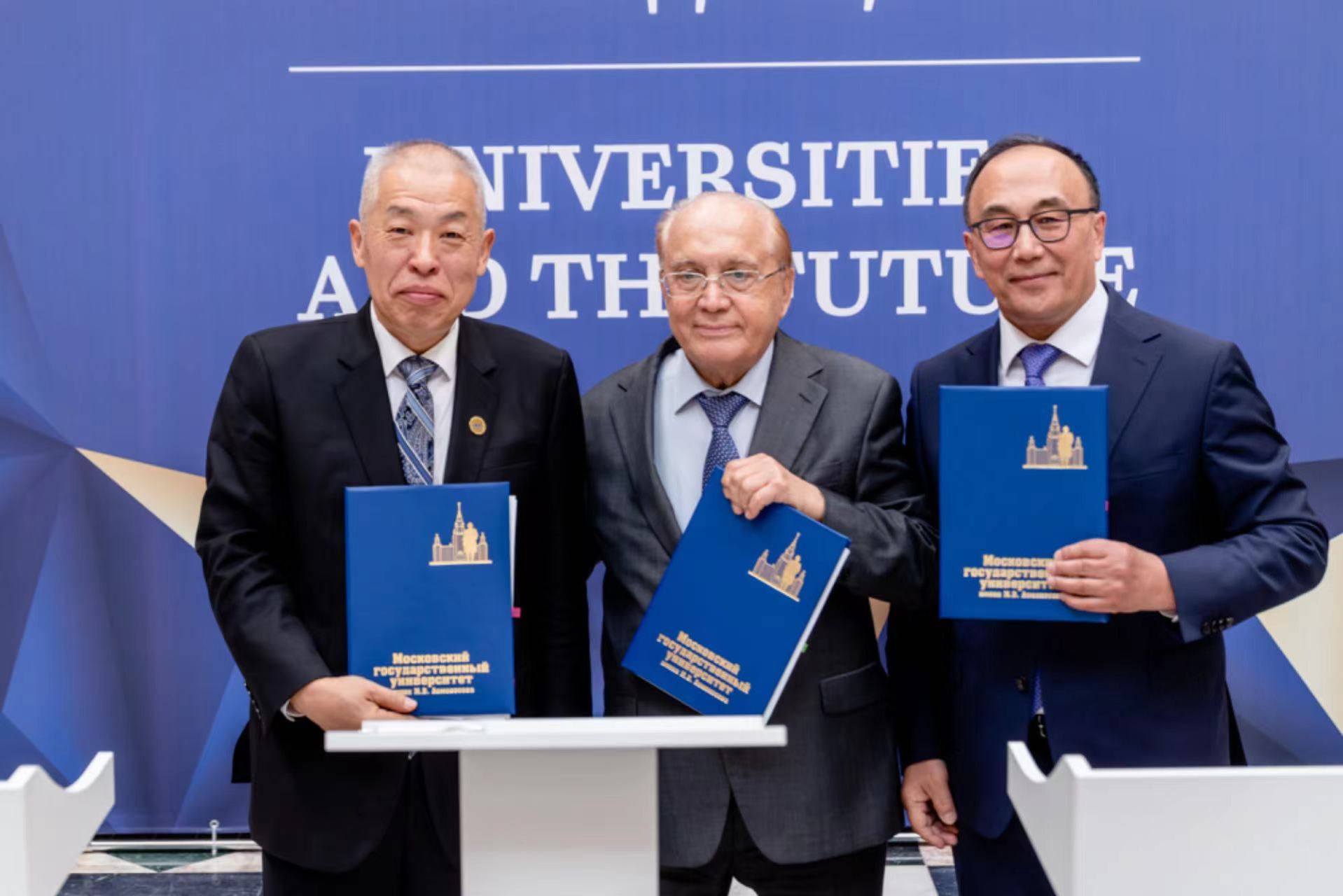 李和章代表ac米兰官网中文网站与莫斯科大学校长萨多夫尼奇、欧亚国立大学校长耶兰·西迪科夫签署三校合作协议。