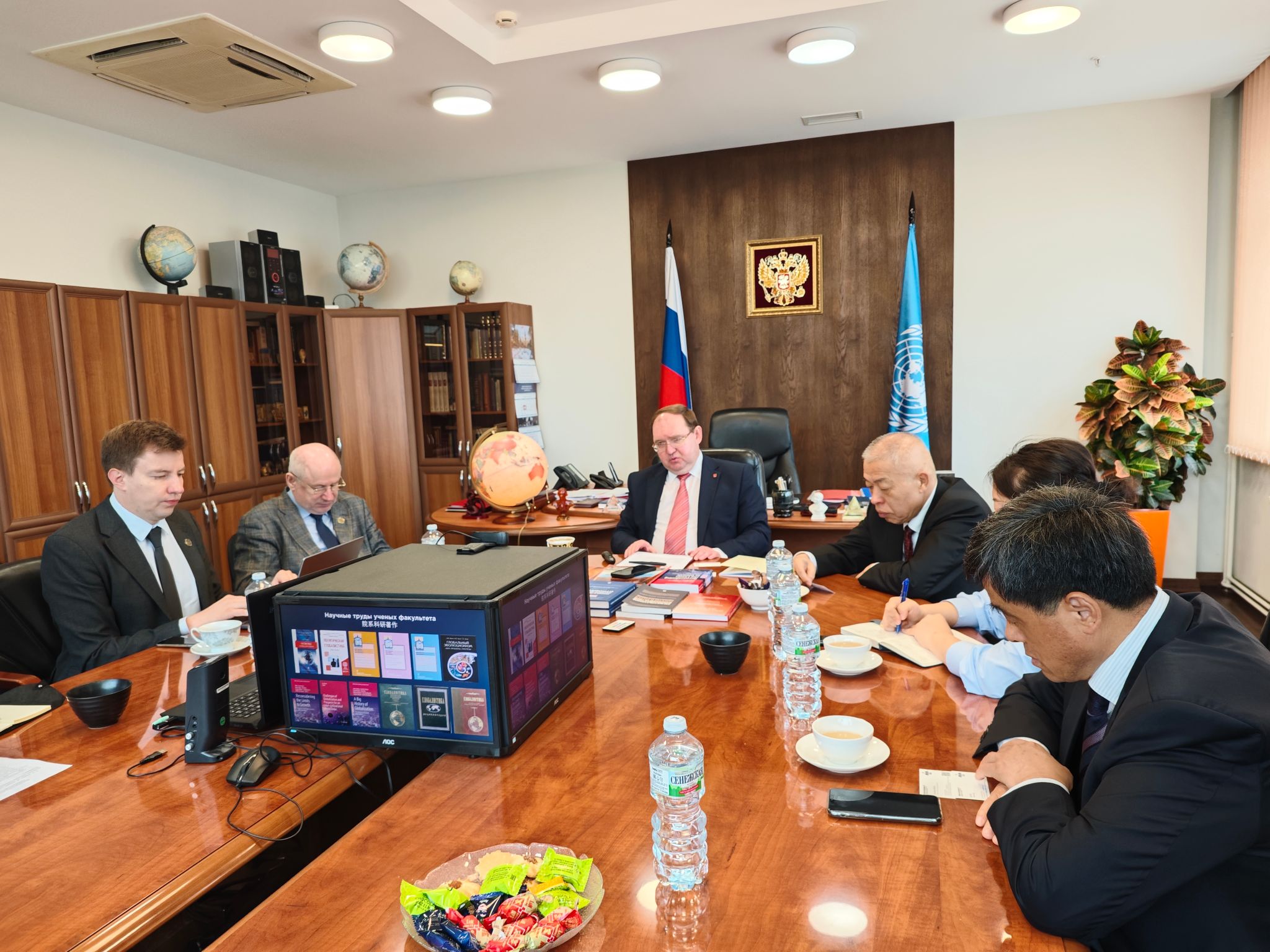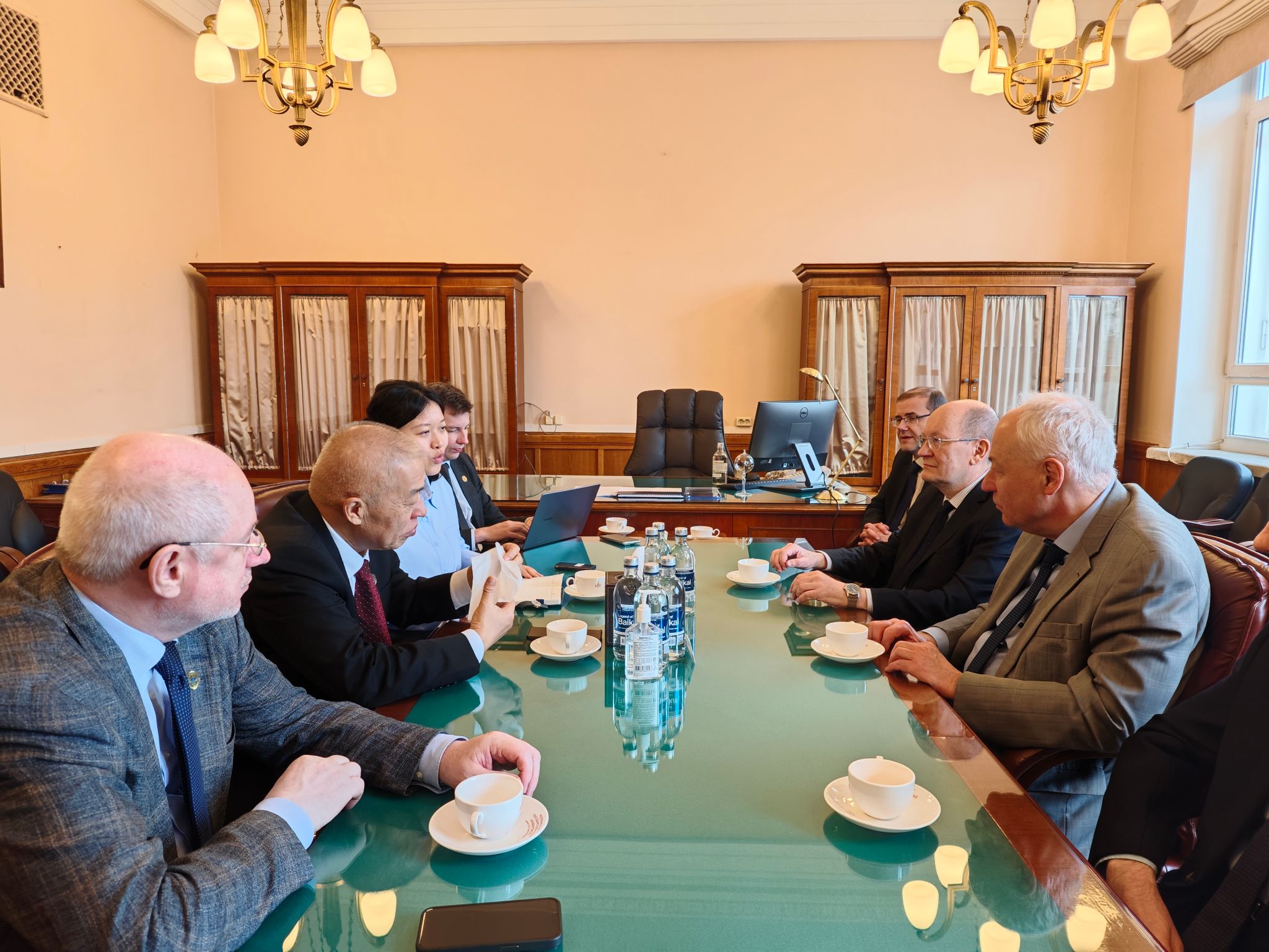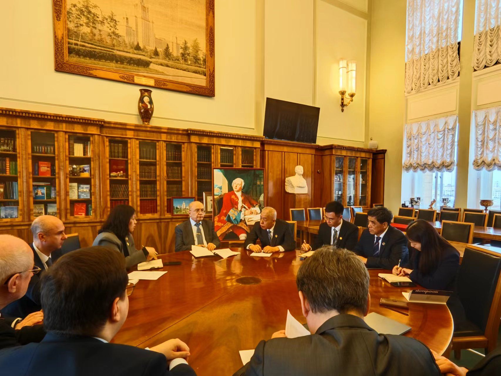 随后,代表团还访问了莫斯科大学物理系,与物理系主任弗拉基米尔·别洛库罗夫、力学数学系主任安德烈·沙法列维奇进行了座谈交流。物理系、力学数学系同意将联合在ac米兰开设新专业。