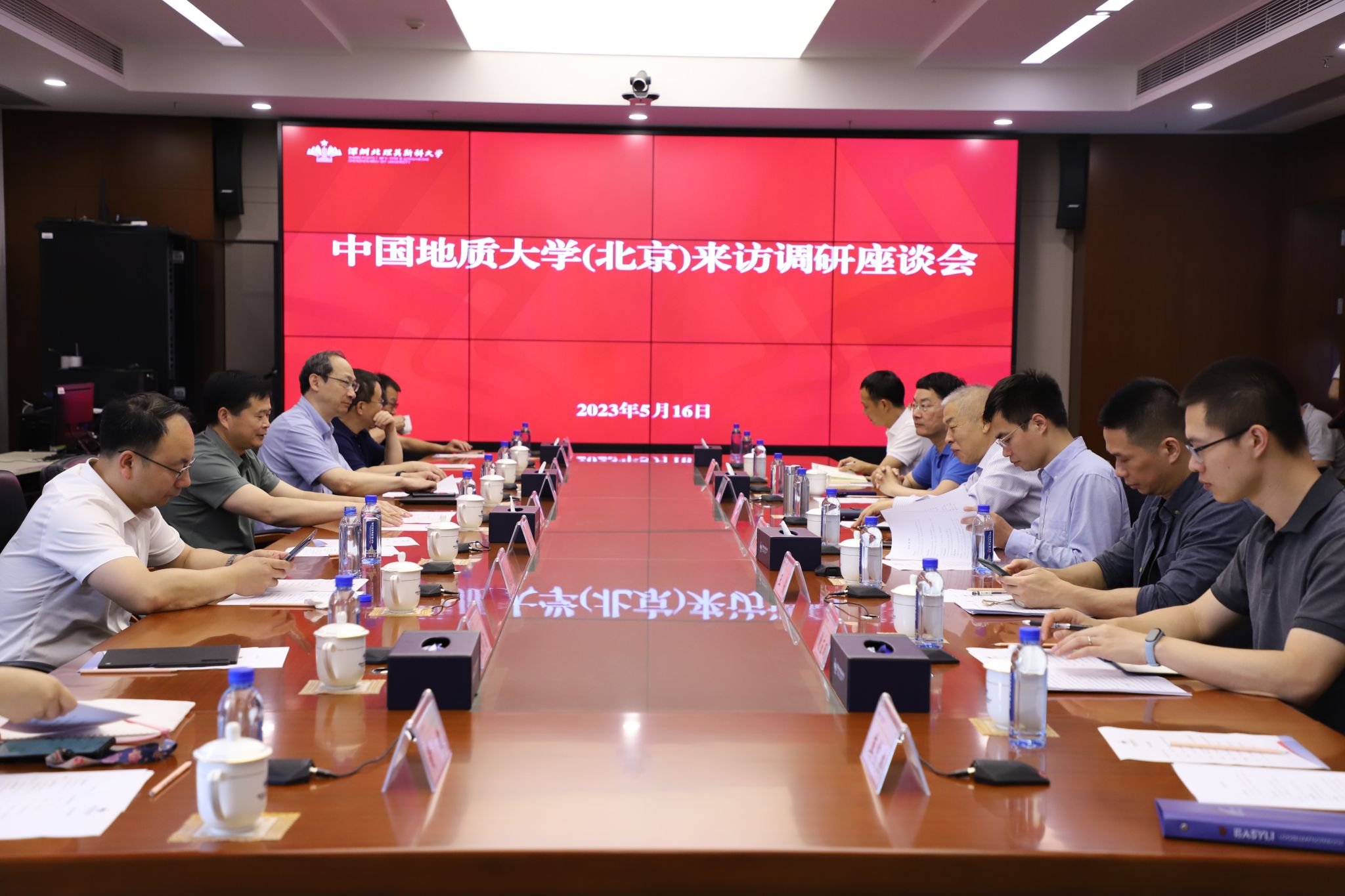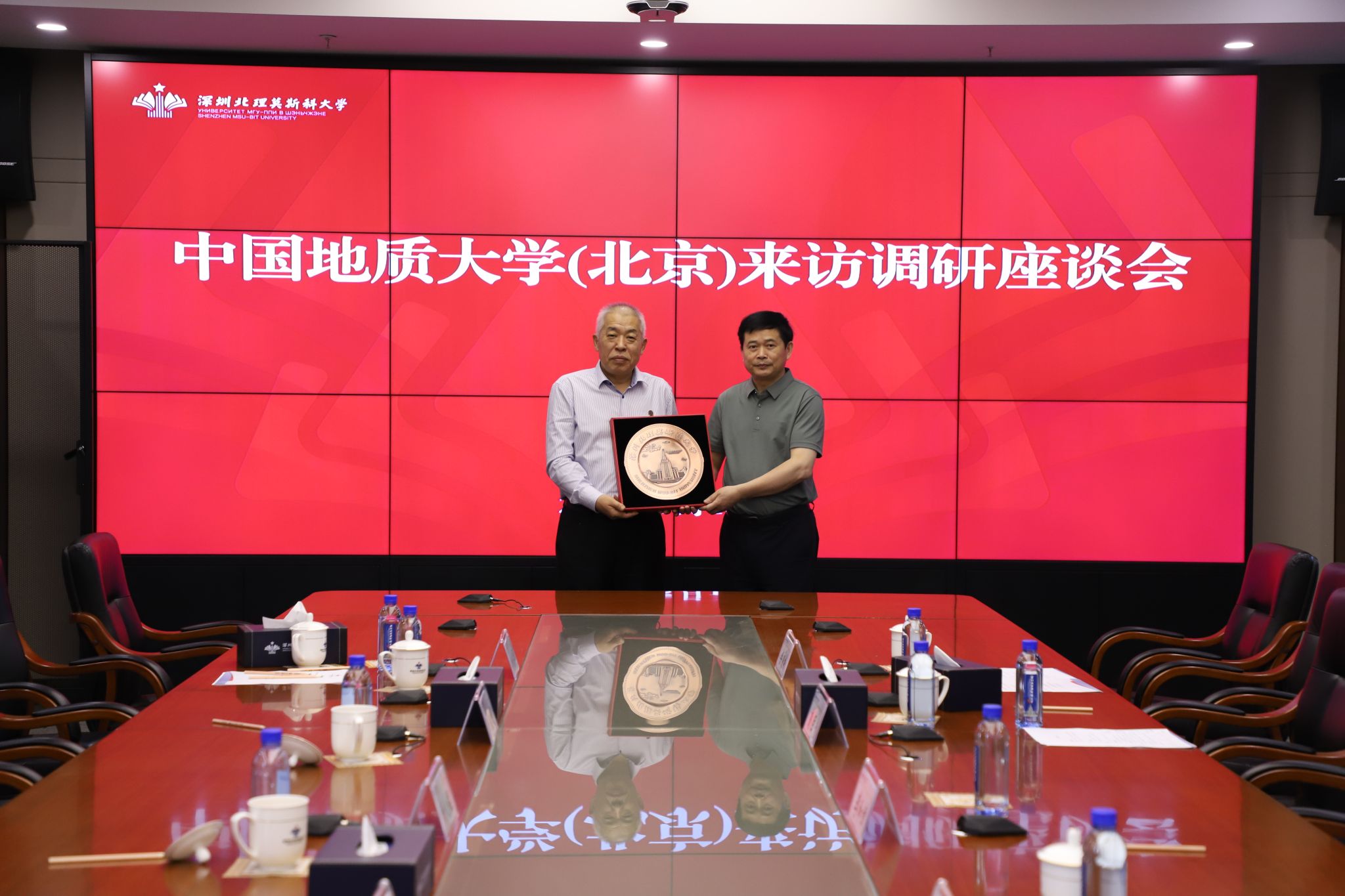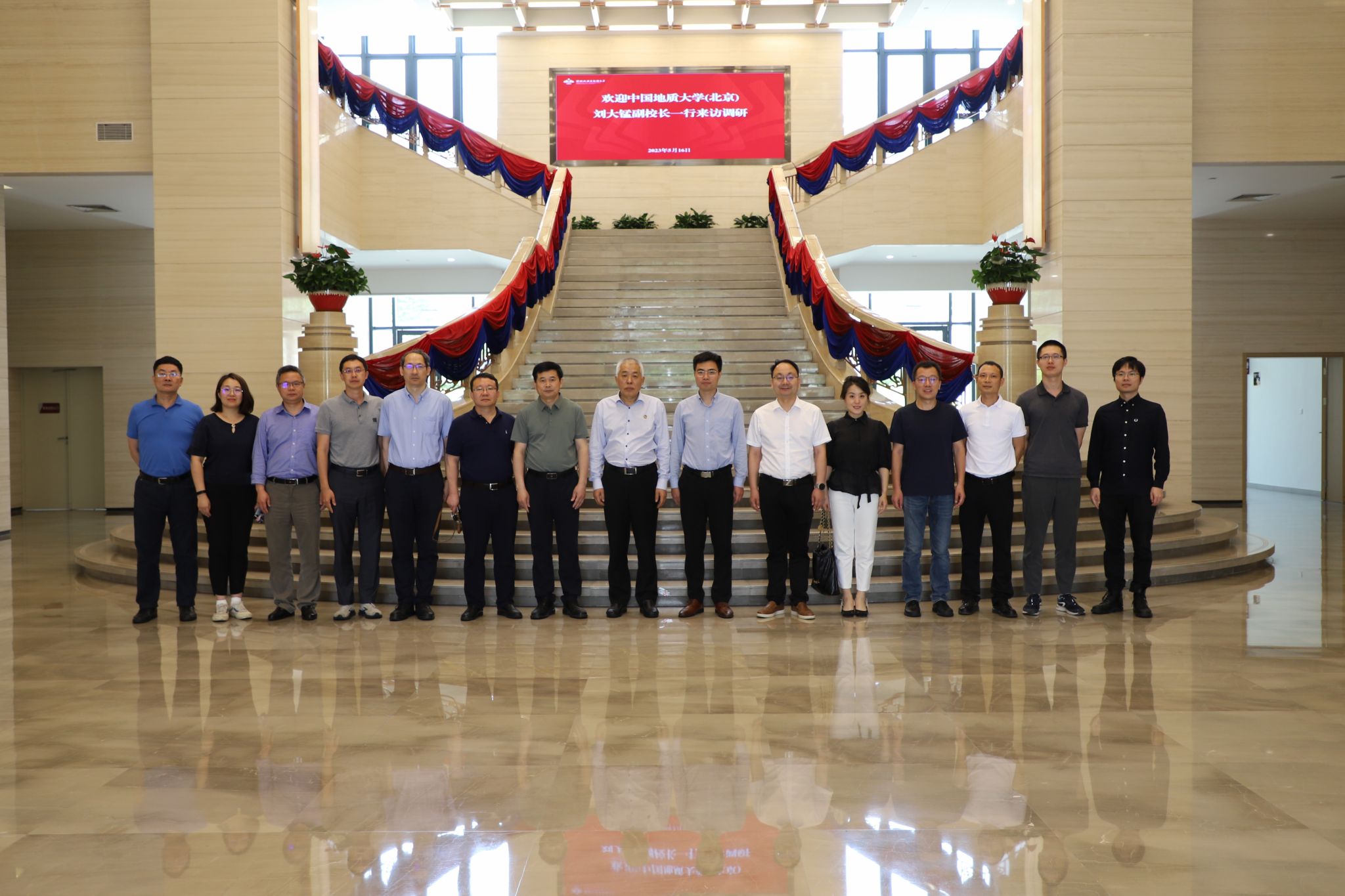 与会代表围绕学校信息系统建设、学生创新实践能力培养、产学研融合等主题的工作进行了深入交流。会后,李和章校长向中国地质大学(北京)访问团赠送纪念品,与会代表在主楼大厅合影留念。