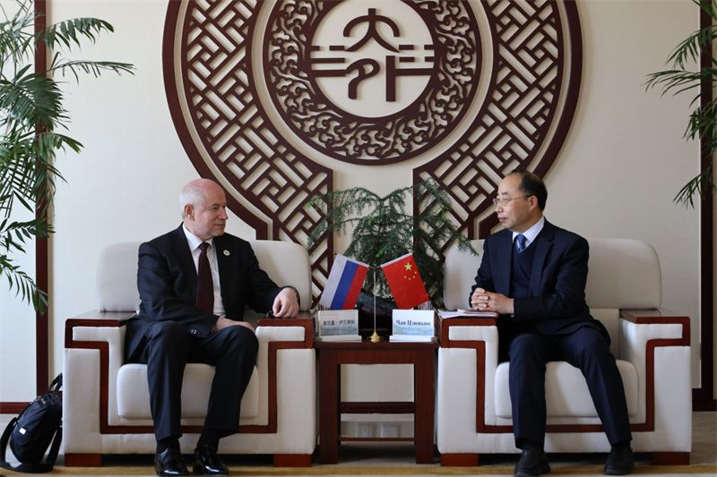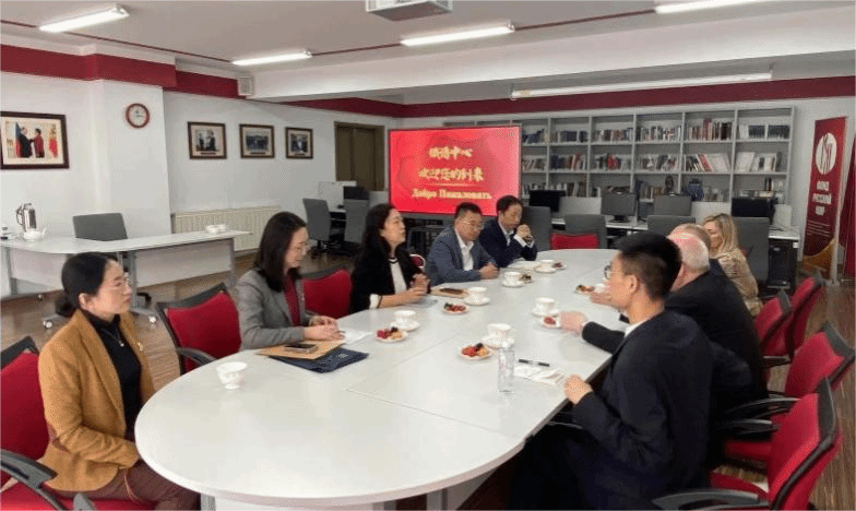 5月9日,伊万琴科赴大连外国语大学调研交流。大连外国语大学副校长常俊跃会见伊万琴科一行,国际交流与合作处、研究生处、俄语学院负责人一同参加了会见。
