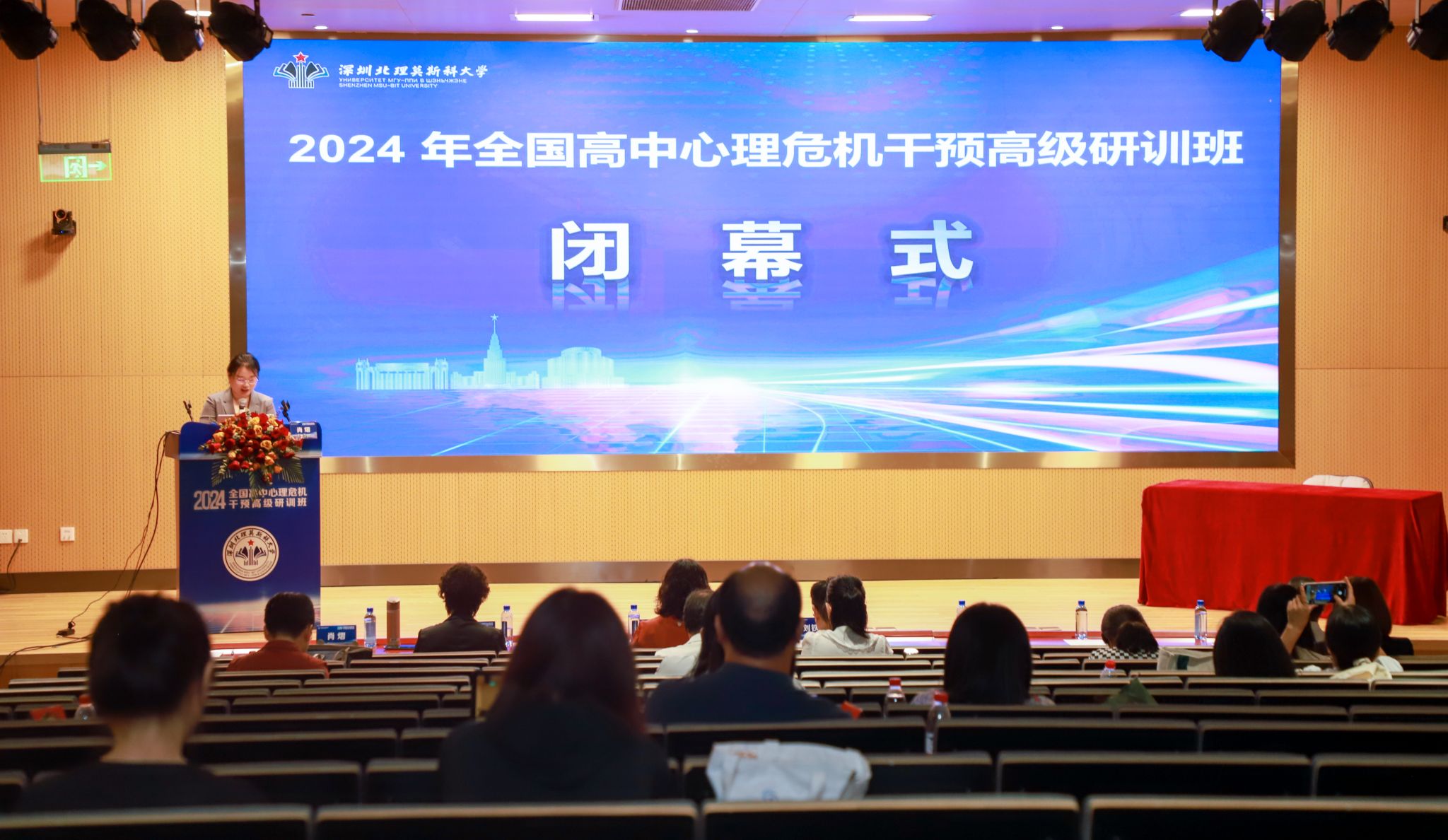 万美娜为闭幕式致辞,她从健全“三预”机制,夯实学生心理危机工作底线;激发社会力量,完善危机联防联控机制;加强队伍建设,打造可用好用可持续的团队三个方面回顾了深圳特色学生心理危机干预工作机制。她指出,本次高研班实现了国际学者与国内专家相交流、理论与实操相结合、顶层设计与参访活动相搭配、前沿科技与传统技术相碰撞、知识学习与互动体验相交叉,希望大家继续善用这个平台,充分学习实践,加强交流合作。最后她向高研班各位工作人员表示衷心感谢。
