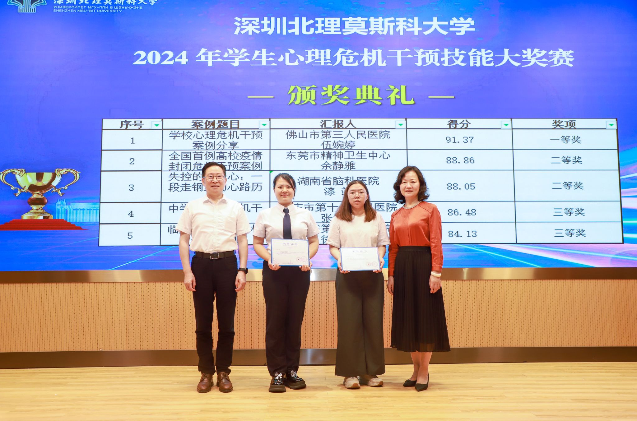 闭幕式上,领导嘉宾为获奖代表颁发学生心理危机干预技能大赛获奖证书,为学员代表颁发结业证书。