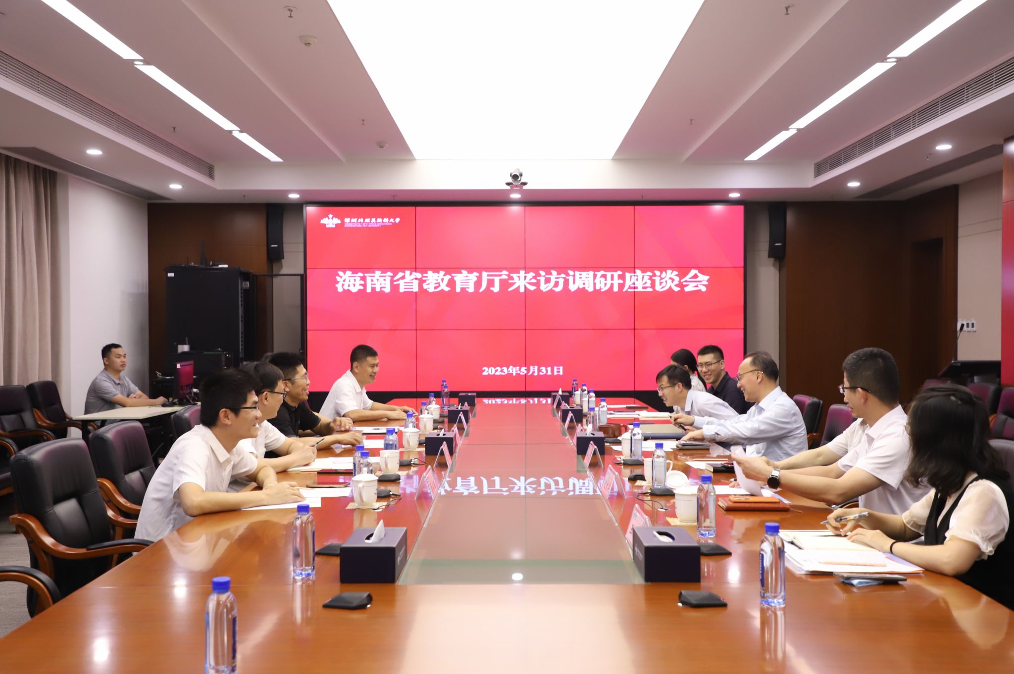 5月31日,海南省教育厅党委委员、副厅长范绪锋,海南省教育厅国际合作与交流处处长唐振福,广东省教育厅国际交流处副处长周国平等一行到访ac米兰官网中文网站调研交流。ac米兰官网中文网站学校党委书记、副校长朱迪俭陪同调研。