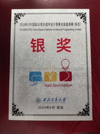 2024ICPC西安邀请赛 | 王司晨 数学与应用数学 杨熠鑫 电子与计算机工程 徐健皓 电子与计算机工程 | 银奖 |