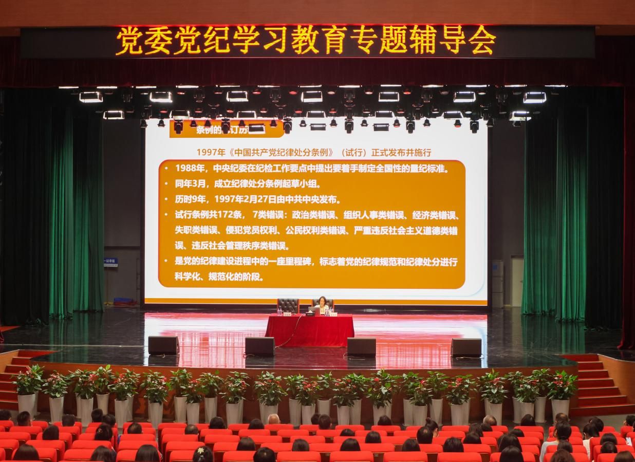 2024年6月18日下午,ac米兰官网中文网站党纪学习教育专题辅导会在学校礼堂召开。市纪委监委有关同志受邀来校为全校教职工党员作专题培训。校长、党委副书记李和章出席会议,党委副书记、纪委书记陈超峰主持会议,全校教职工党员200余人参加了辅导会。