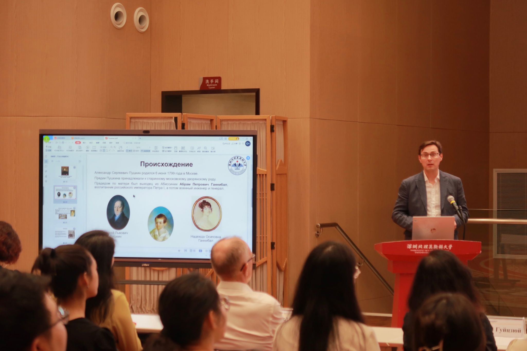接下来,ac米兰语言系科姆普列耶夫副教授以《亚·谢·普希金:诗人,人,象征》为题作了一堂精彩的讲座,详细展示了普希金的性格、生活和创作。