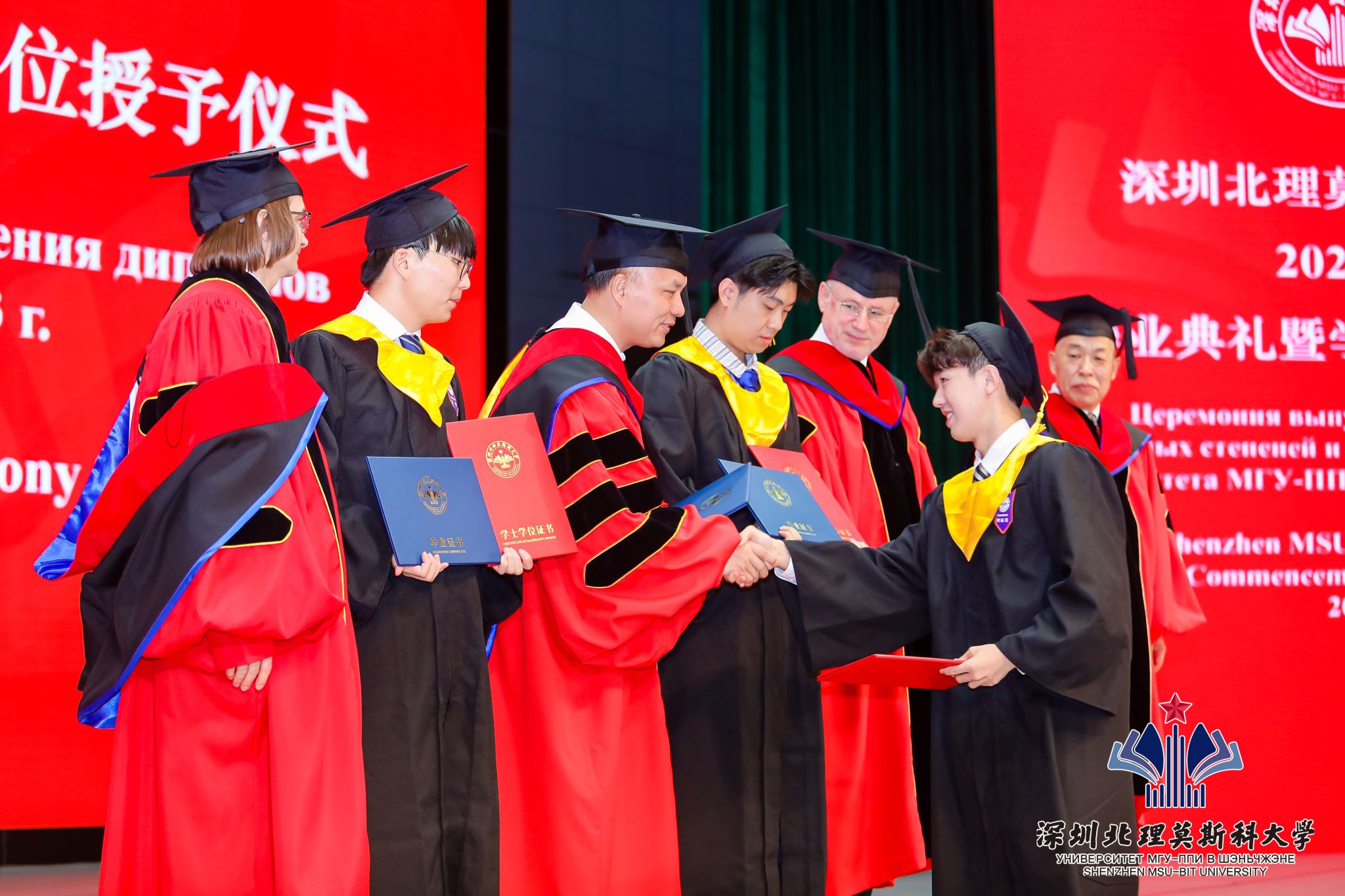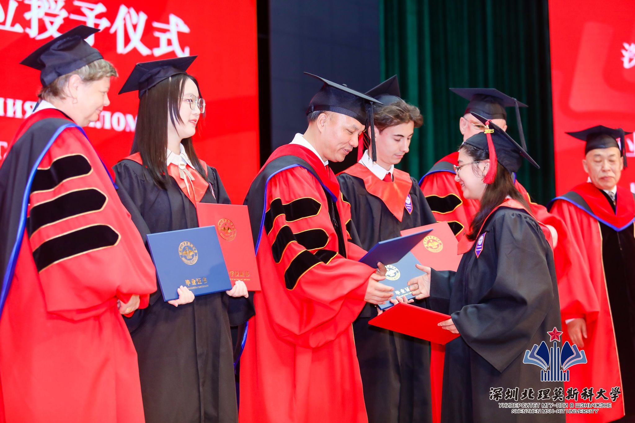 毕业典礼结束后举行隆重的学位授予仪式。李和章校长、伊万琴科第一副校长、朱迪俭副校长以及各系负责人为毕业生拨穗并颁发毕业证和学位证书。
