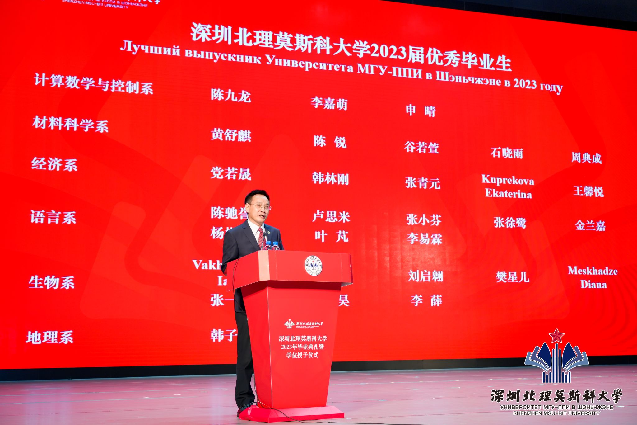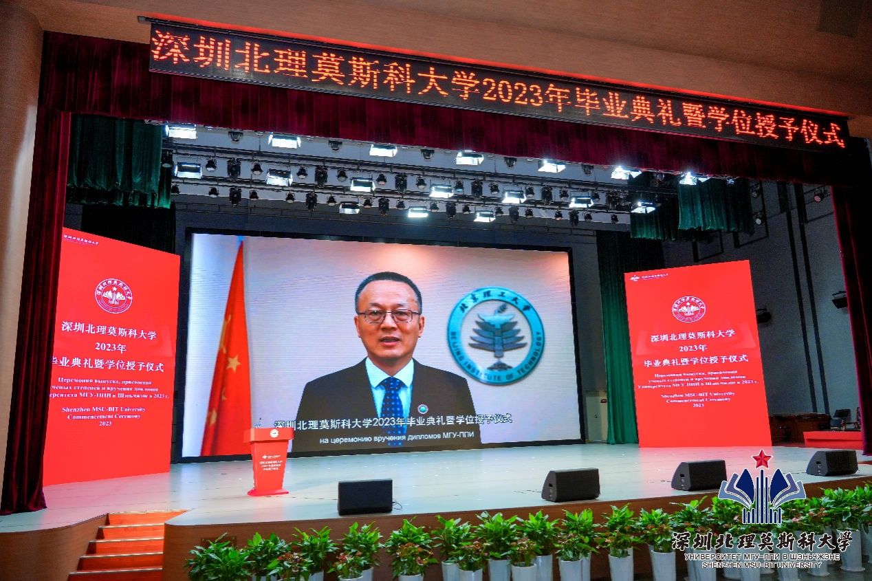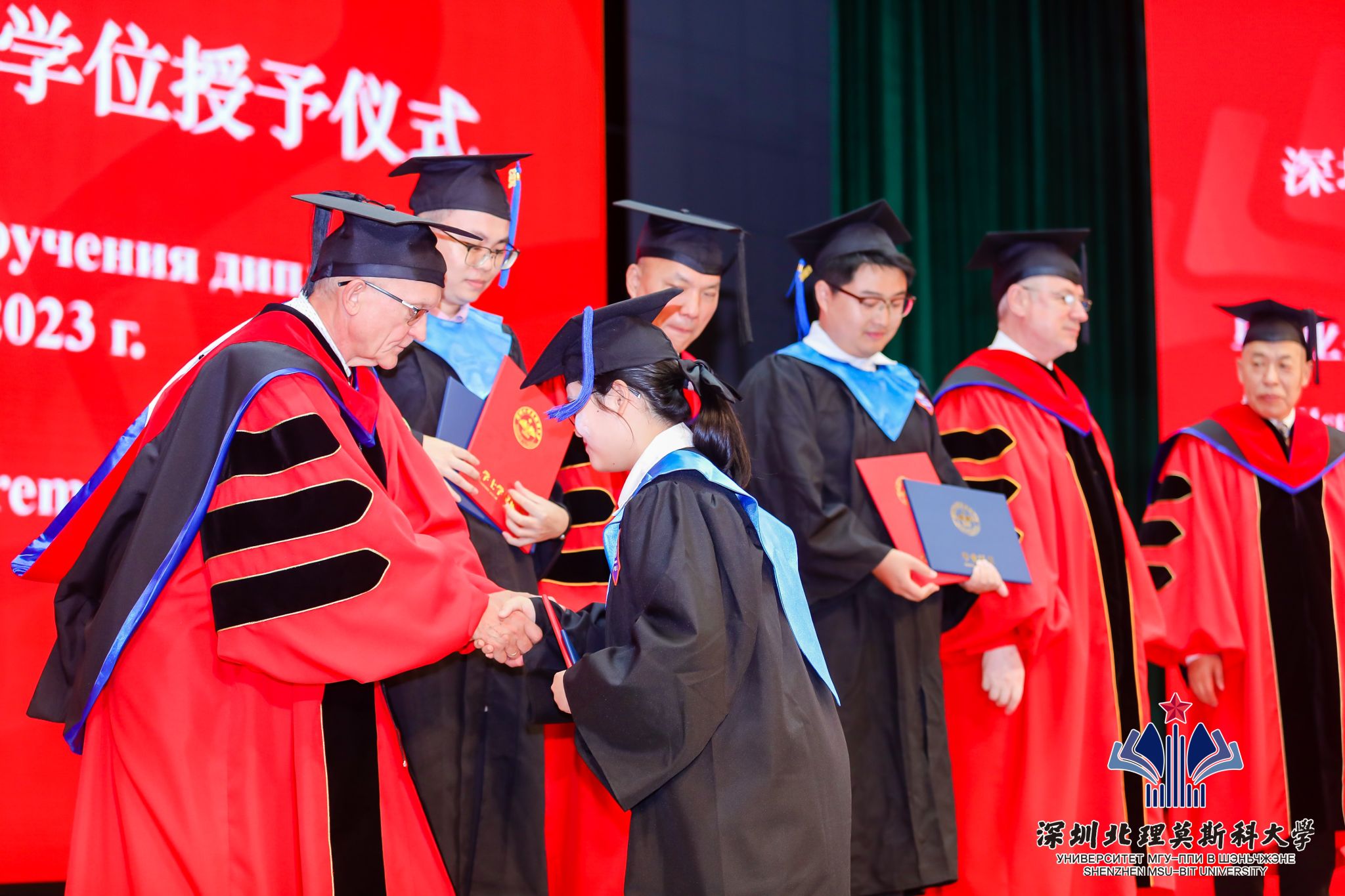 出席毕业典礼暨学位授予仪式的有俄罗斯联邦驻广州总领事馆副领事玛丽娜·丘穆丽娜,广东省教育厅交流合作处副处长周国平,深圳市科学技术协会党组成员、一级调研员孙楠,深圳市外事办公室欧非处处长肖琼和企事业单位代表。ac米兰官网中文网站校长李和章、第一副校长С.Н.伊万琴科、党委副书记、纪委书记陈超峰,学校教职工代表、2023届毕业生及其家人朋友到场共同见证这一难忘时刻。典礼由学校党委书记、副校长朱迪俭主持。