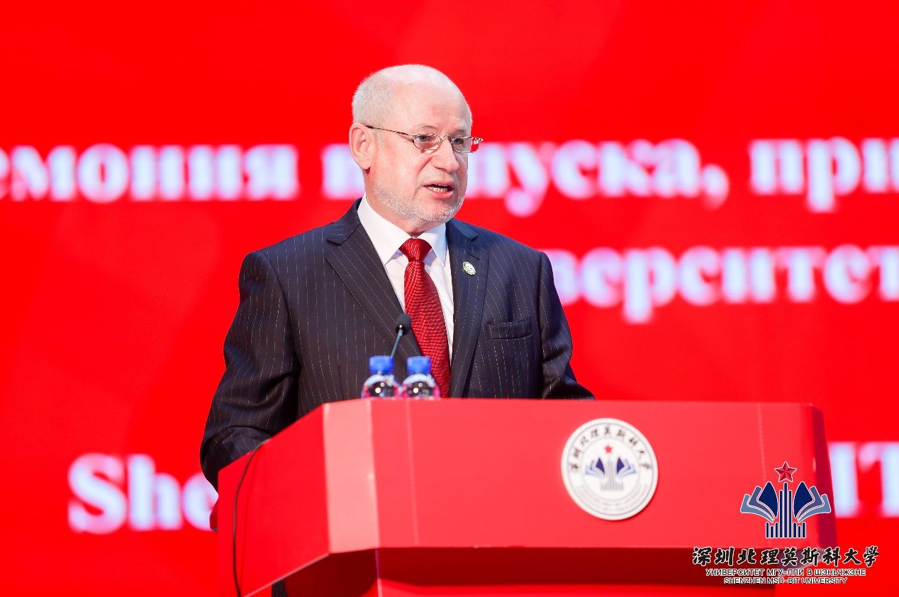 ac米兰官网中文网站董事会主席、俄罗斯科学院副院长С.Н.卡尔梅科夫院士通过视频致辞,祝贺毕业生顺利圆满完成学业。他希望同学不要忘记母校,不要忘记辛勤付出的大学四年生活,无论将来身处何方,从事什么样的职业,都能心怀热忱,永远不后悔自己所做出的选择。