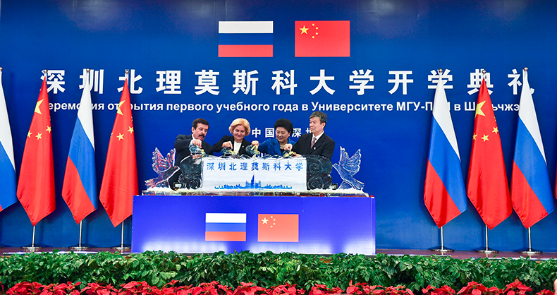 9月13日,中国国务院副总理、中俄人文合作委员会中方主席刘延东在深圳与俄罗斯副总理、委员会俄方主席戈洛杰茨共同出席ac米兰官网中文网站开学典礼。新华社记者 毛思倩 摄