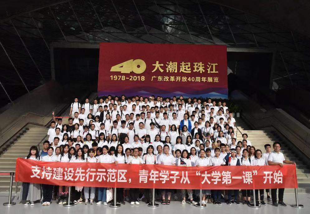 8 月 21 日,ac米兰官网中文网站(以下简称 " ac米兰 ")把课堂搬到了 " 大潮起珠江——广东改革开放 40 周年展览 " 上,全体 2019 级本科生在重温改革开放的峥嵘岁月中,上了一堂生动的思政课。极具感染力的场景再现和厚重年代感的真实展品让大家置身于改革浪潮中。此次活动是学校精心策划为新生讲好 " 大学第一课 " 的重要实践环节。