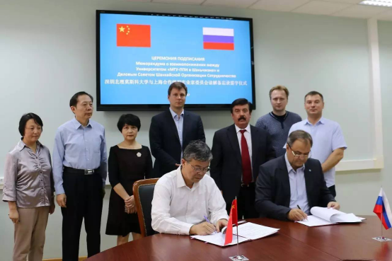 2017年7月20日,我校与上海合作组织实业家委员会在莫斯科大学正式签署了谅解备忘录。上海合作组织实业家委员会秘书处将给予我校以下支持:在国际和地区龙头企业为在校生提供专业实习和社会实践的机会。