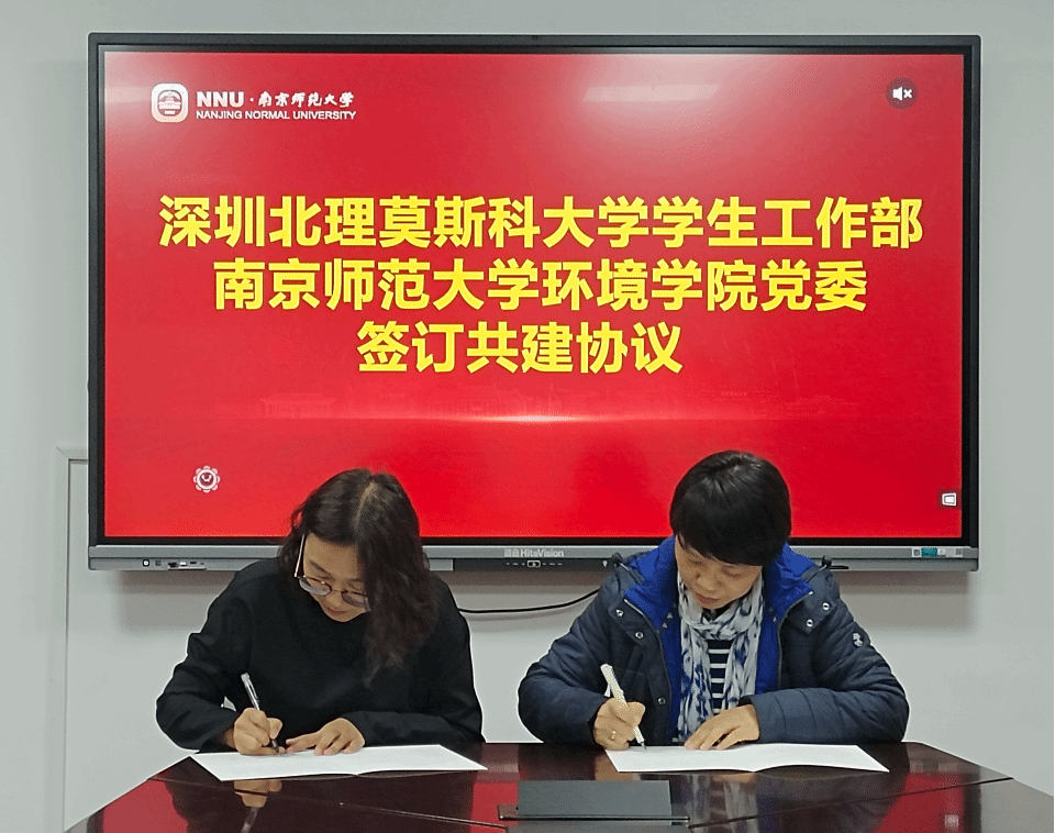 随后,我校学生工作部部长张杨和南京师范大学环境学院党委书记杨燕代表双方签署共建协议书,再次就合作内容、共建机制等达成高度一致。