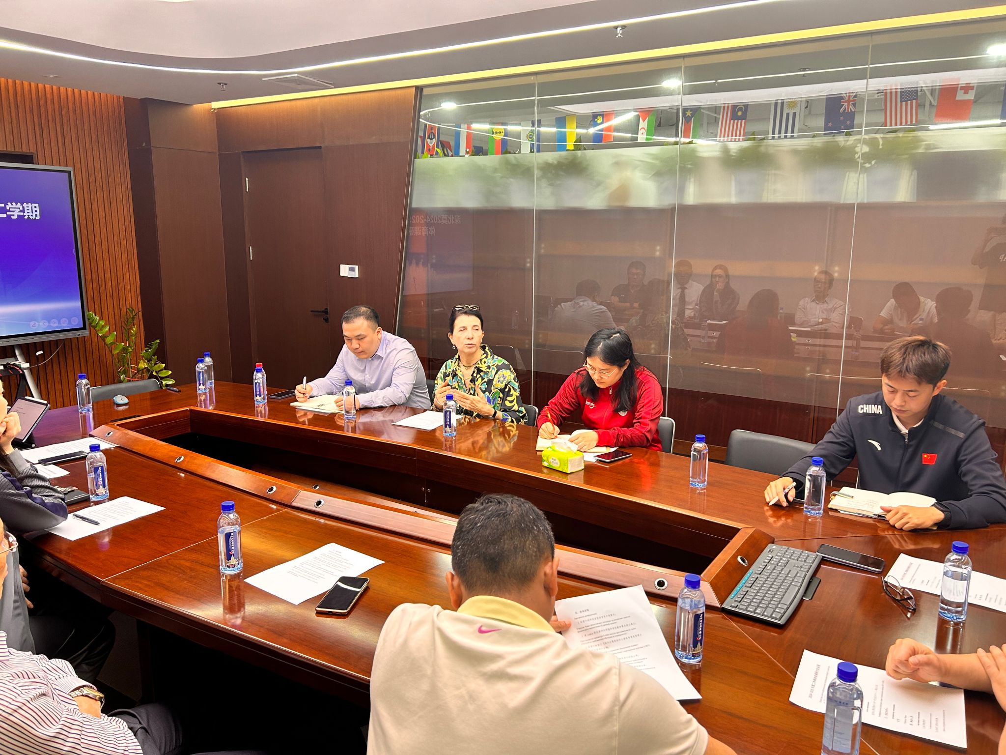 为了进一步优化体育课程管理,提升教学质量,加强各部门之间的协同合作,提高学生身体素质。4月11日上午10:00,学生工作部牵头组织召开2024-2025学年第二学期体育课研讨会。会议聚焦于体育课程安排、体测实施细节、学生特殊情况处理以及教学管理优化等多个重要议题,旨在为学生打造更加科学、合理的体育教育环境。学术事务部俄方部长莱·苏·伊兹玛依洛娃、学生工作部赵雪老师、全校体育教师及体育场馆负责人参加会议。