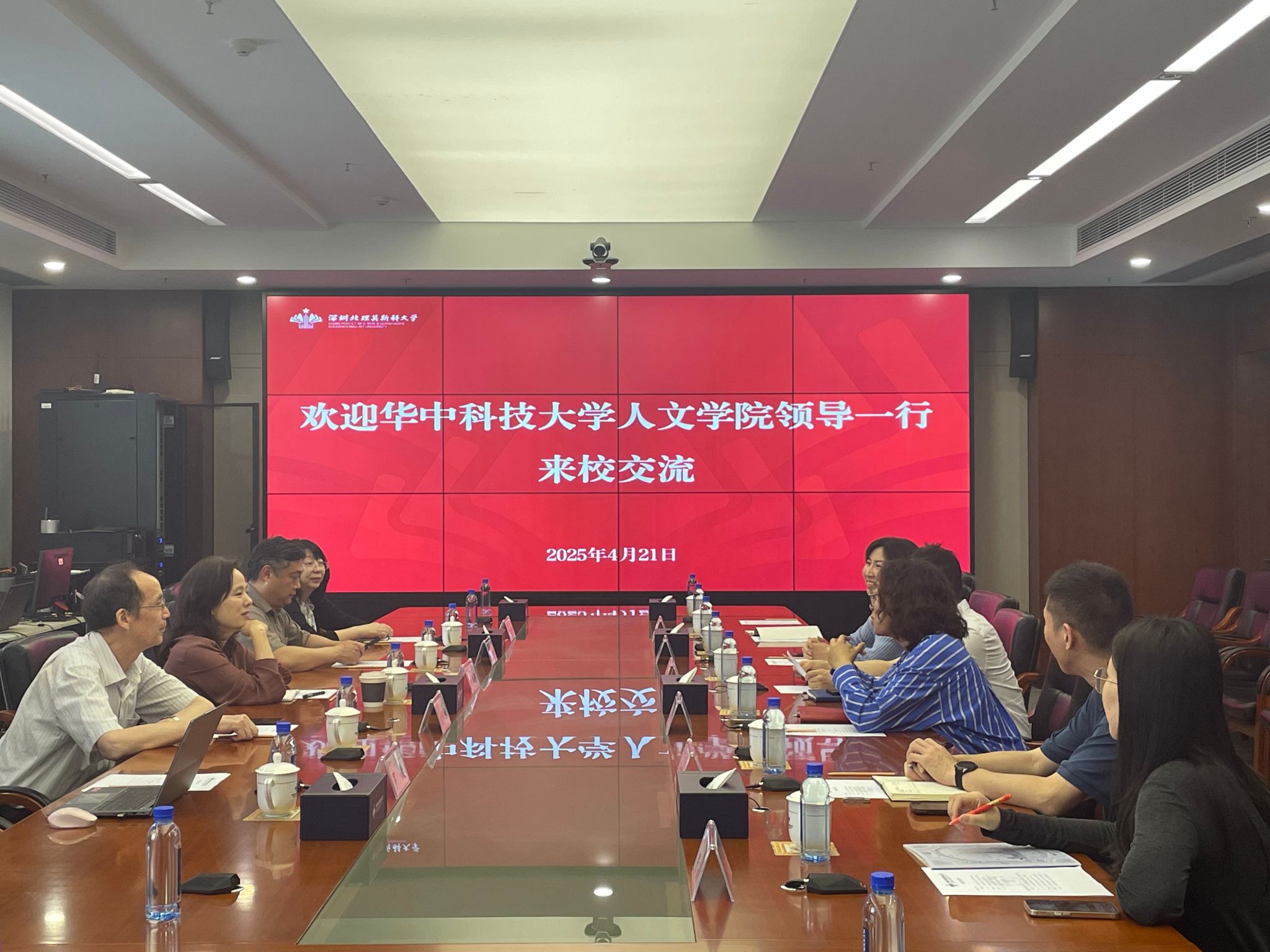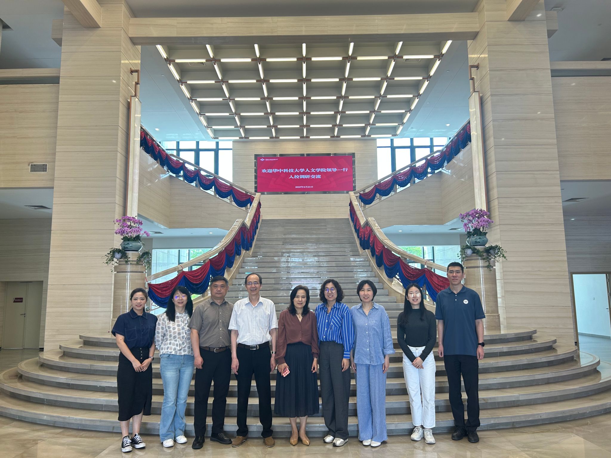 华中科技大学人文学院的调研团队对学校的热情接待表示感谢,并就目前华中科技大学人文学院在国际化进程中遇到的挑战与机遇进行了深入讨论,对两校在人文社科领域的合作可能性,提出了建设性意见,希望未来能在学术交流、师生互访等方面加强合作。双方还就校园文化建设进行了广泛交流。