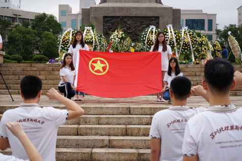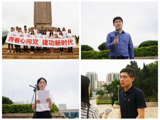 仪式在庄严的国歌声中开始。全体成员向革命先烈纪念碑献花、默哀,并在团旗下重温入团誓词。仪式沉静而肃穆,绽放的鲜花充分表达了对先烈们崇高的敬意:革命先烈永垂不朽!