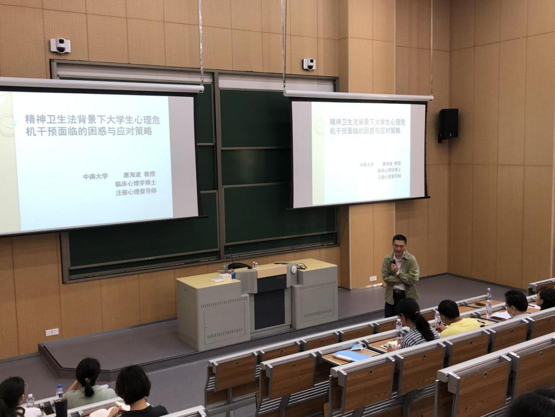 (图为 中南大学心理咨询专家唐海波教授面向教职工开展培训)