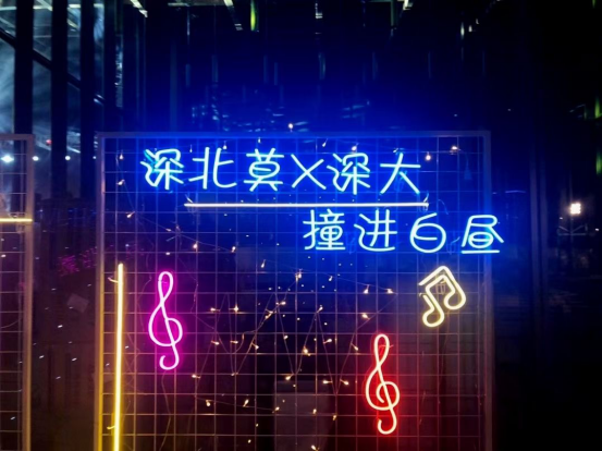 11月28日,我校音乐协会继续举办了主题为“撞进白昼”的乐队Live暨ac米兰、深大两校联谊活动。深圳大学四支乐队与我校的学生乐队共同为大家带来了两个小时的音乐盛宴狂欢,到场观众同学约200余人。其中,深圳大学的“体外快感”乐队带来歌曲《力谋》,赞颂了深圳一代一代建设者的坚持与奋斗;我校“坠落荔枝”乐队带来的歌曲《1980》,献礼深圳经济特区建立四十周年,号召同学们抓紧年轻的机会奋力拼搏、成为这伟大时代中的重要一员。