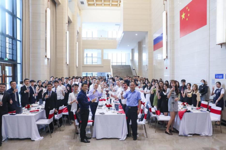 伴随着悠扬的音乐声在耳畔,校领导与嘉宾们纷纷起身与学生碰杯,分享难得的齐聚时刻。
