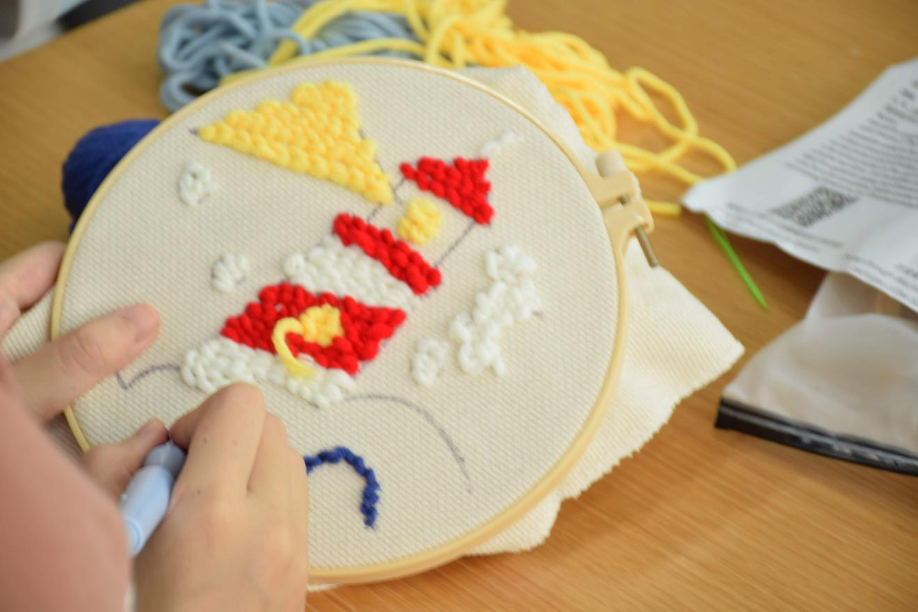 “钩织的过程让我暂时远离电子产品,全心贯注在手上的戳画针,整个人感觉很减压”惠泽普同学如是介绍自己的戳戳画作品。