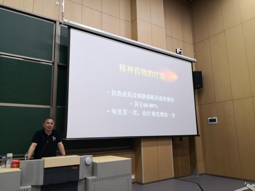 (图为 胡院长开展“治疗精神障碍药物知识”主题讲座)