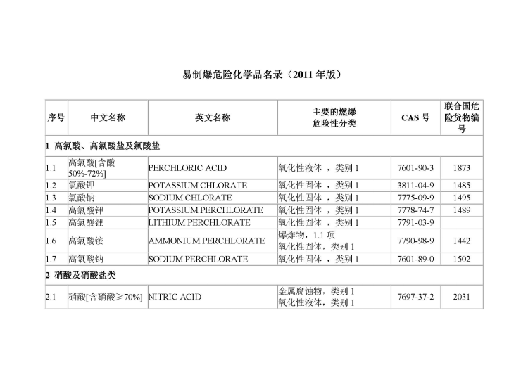 易制爆危险化学品名录(2011年版)(公安部2011年11月公告)