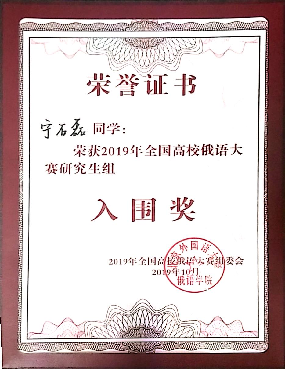 教育的过程是知识的渗透,也是品德的滋养,我们既要培养具有良好的专业素质、扎实的俄语基本功、掌握俄语知识的高水品专业人才,更要培养品德高尚、朝气蓬勃、奋发有为的社会主义新青年,我们始终把德育放在第一位。2019年,语言文学系17级2班彭方懿同学获得了“2018-2019年度深圳市优秀学生干部”的荣誉称号;2020年,我系17级2班杨莉同学获得“2019-2020年度深圳市优秀学生干部的荣誉称号”,为我们全系的同学树立了榜样。