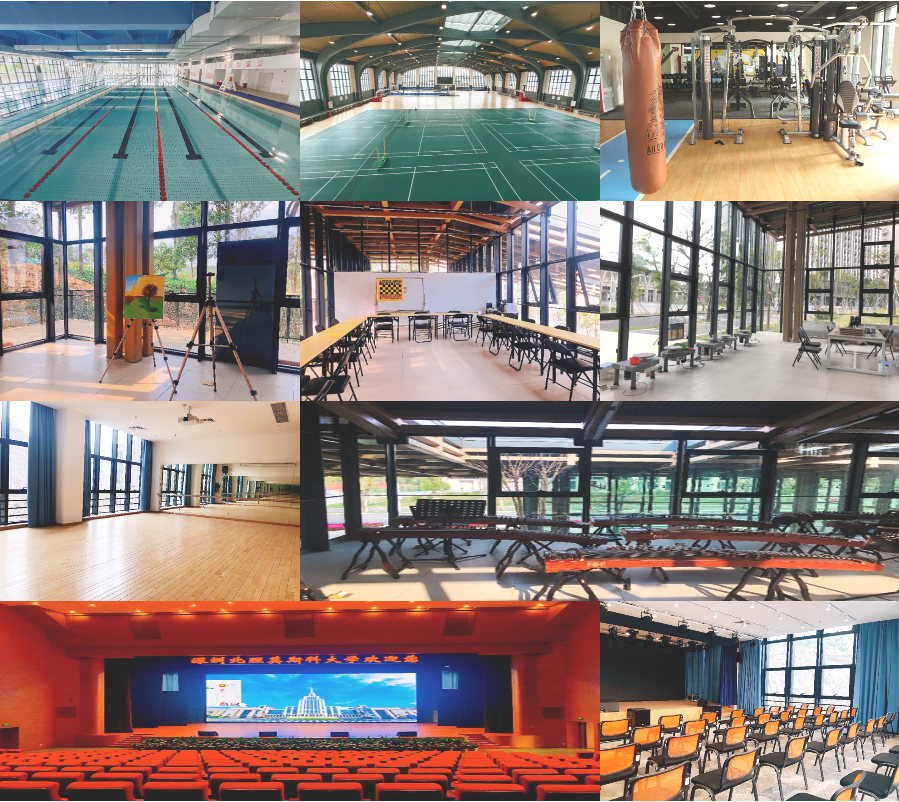 学校配套建设有体育场、室内多功能体育馆、室内游泳馆、健身房、舞蹈室、学生活动中心等,各类文体设施健全,设备先进,可满足开展各类文体活动的需求。