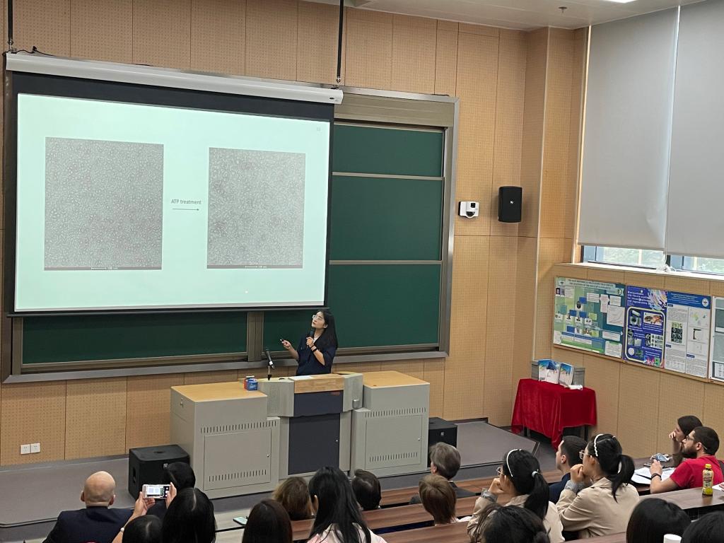 会议主办方共选出10篇演讲论文和10篇海报论文。硕士期间曾就读于ac米兰官网中文网站生物系纳米生物方向,目前在香港中文大学(深圳)攻读博士学位的王曦同学分享了她在两所知名大学的成长经历,并汇报了其最新的课题研究成果,精彩的报告赢得了在场师生们的热烈掌声。