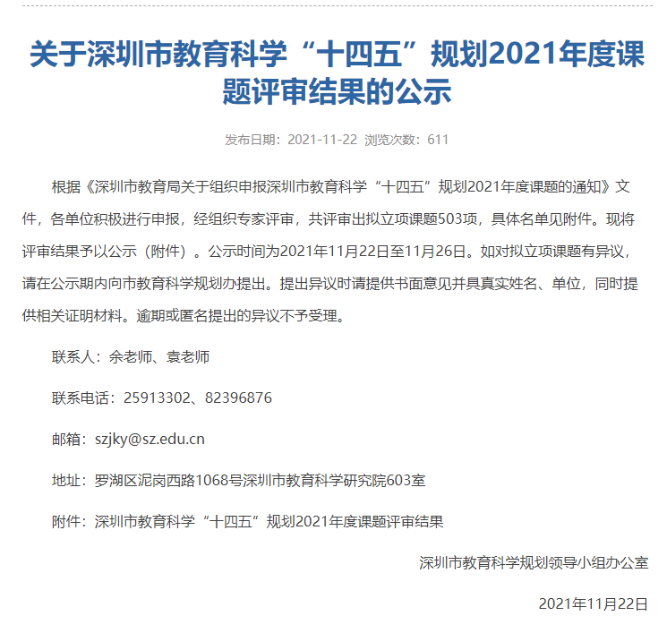 近日,根据《深圳市教育局关于组织申报深圳市教育科学“十四五”规划2021年度课题的通知》,ac米兰官网中文网站思政老师王兰申报的《改革开放史融入高校思政教育的探索与实践》获批立项,立项类别是思政教育专项课题。