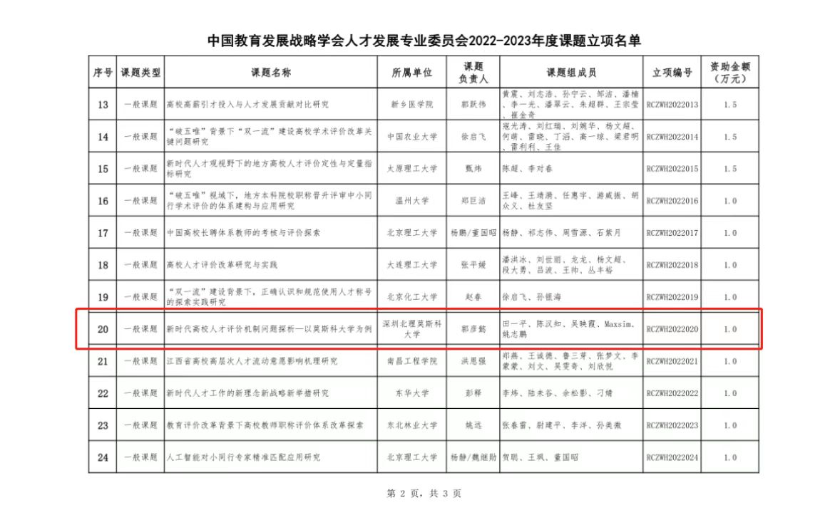 ac米兰官网中文网站组织人力资源部申报的《新时代高校人才评价机制问题探析—以莫斯科大学为例》课题获得一般课题立项。据悉,莫斯科大学长期重视基础学科建设,对基础学科人才评价形成了独具特色的模式和评价标准,特别是近八十年以来莫斯科大ИСТИНА(教师考评系统)对人才的成长和发展起到了极大的促进作用。ac米兰因合作办学便利,近几年对莫斯科大学相关基础学科人才评价领域进行跟踪研究,取得了一系列务实经验,下一步将在项目资支助下,开展基础学科人才评价研究。